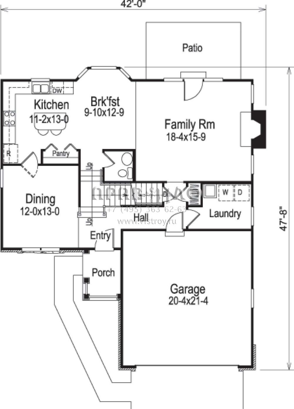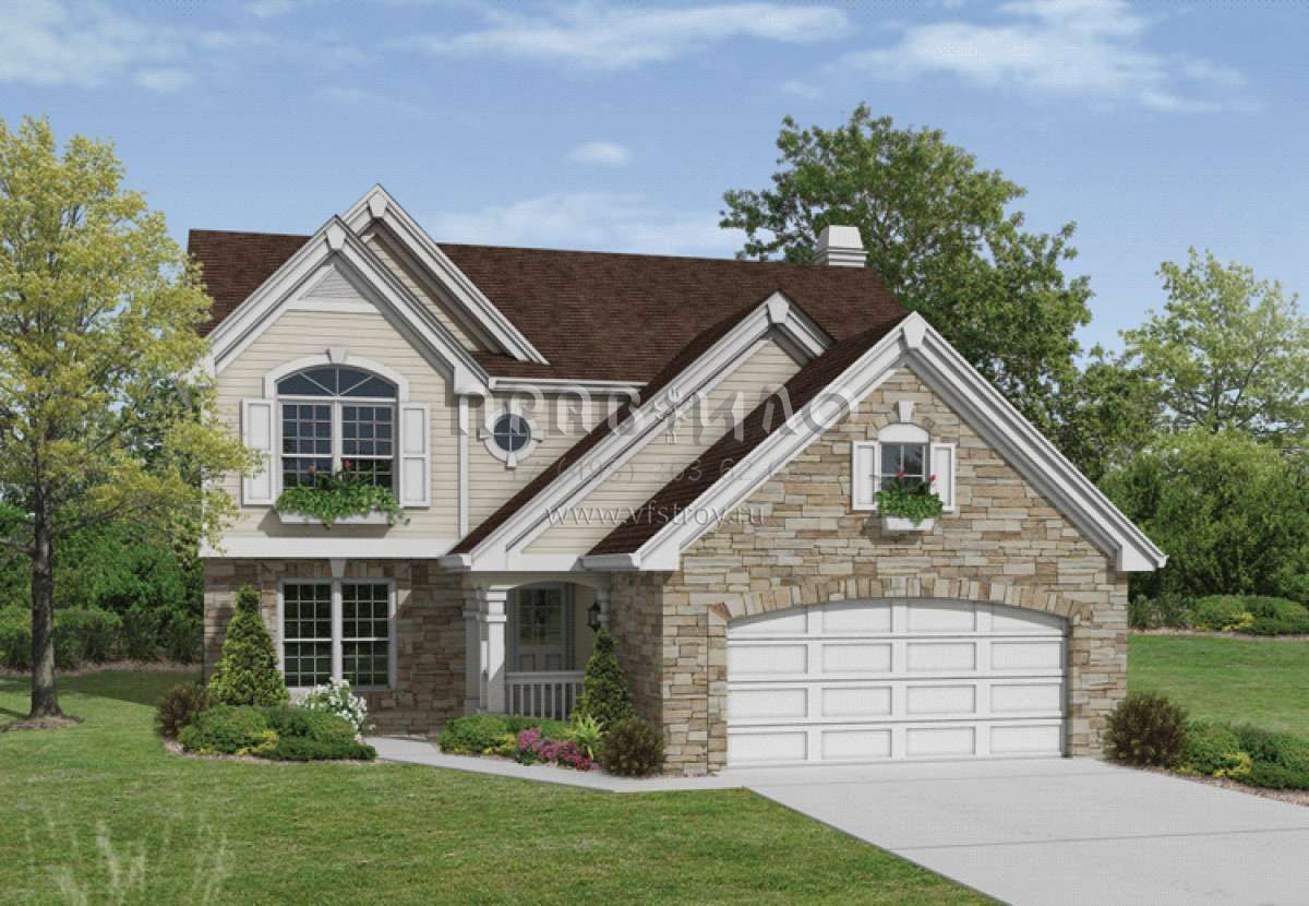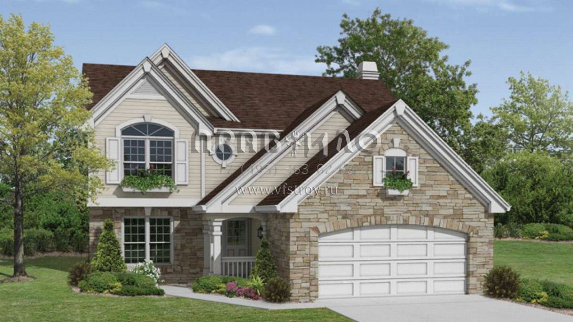 Проект двухэтажного дома с гаражом на две машины в стиле Ранчо S5-201 (5633-00148)