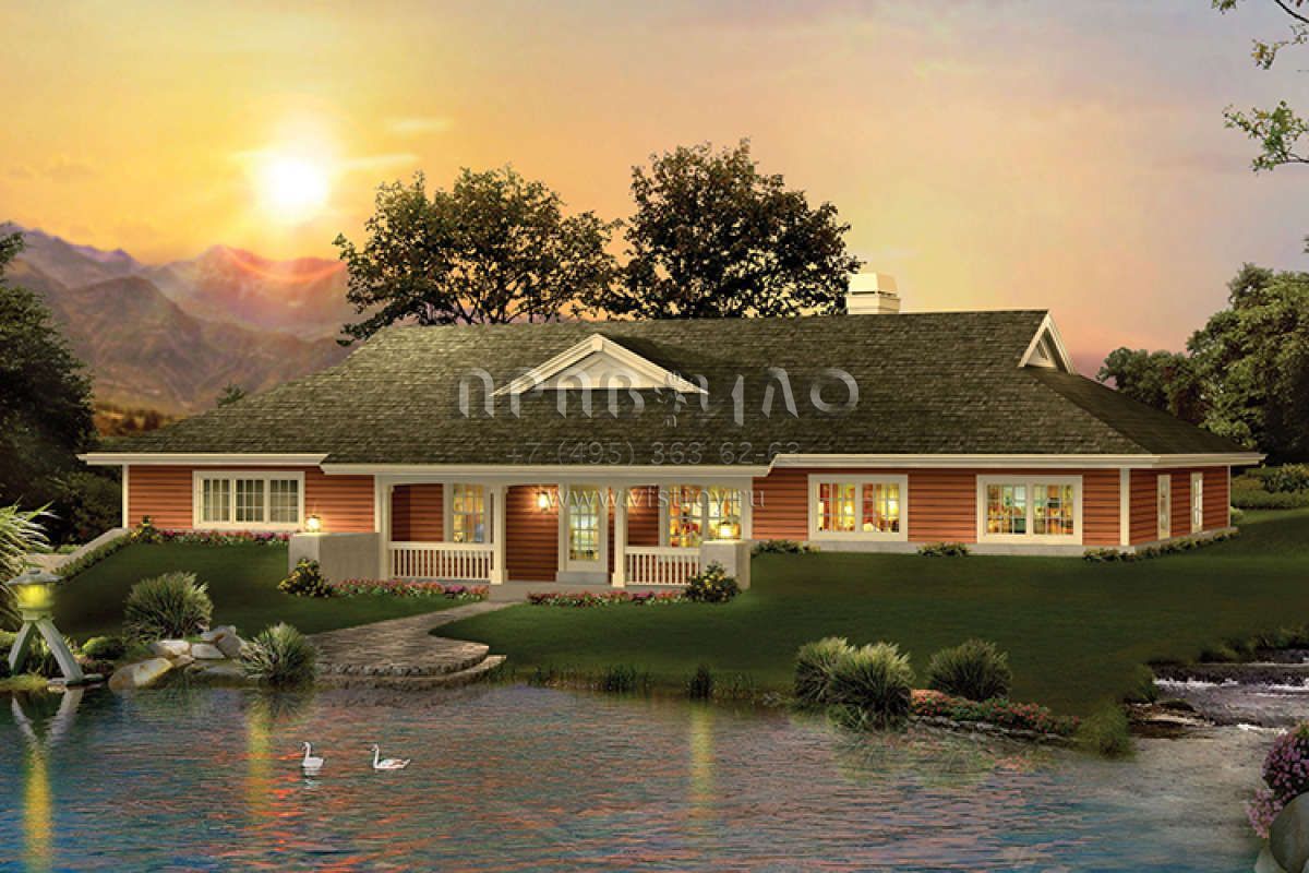 Проект одноэтажного дома с гаражом на три и более машин в стиле Ранчо S5-201 (5633-00253)