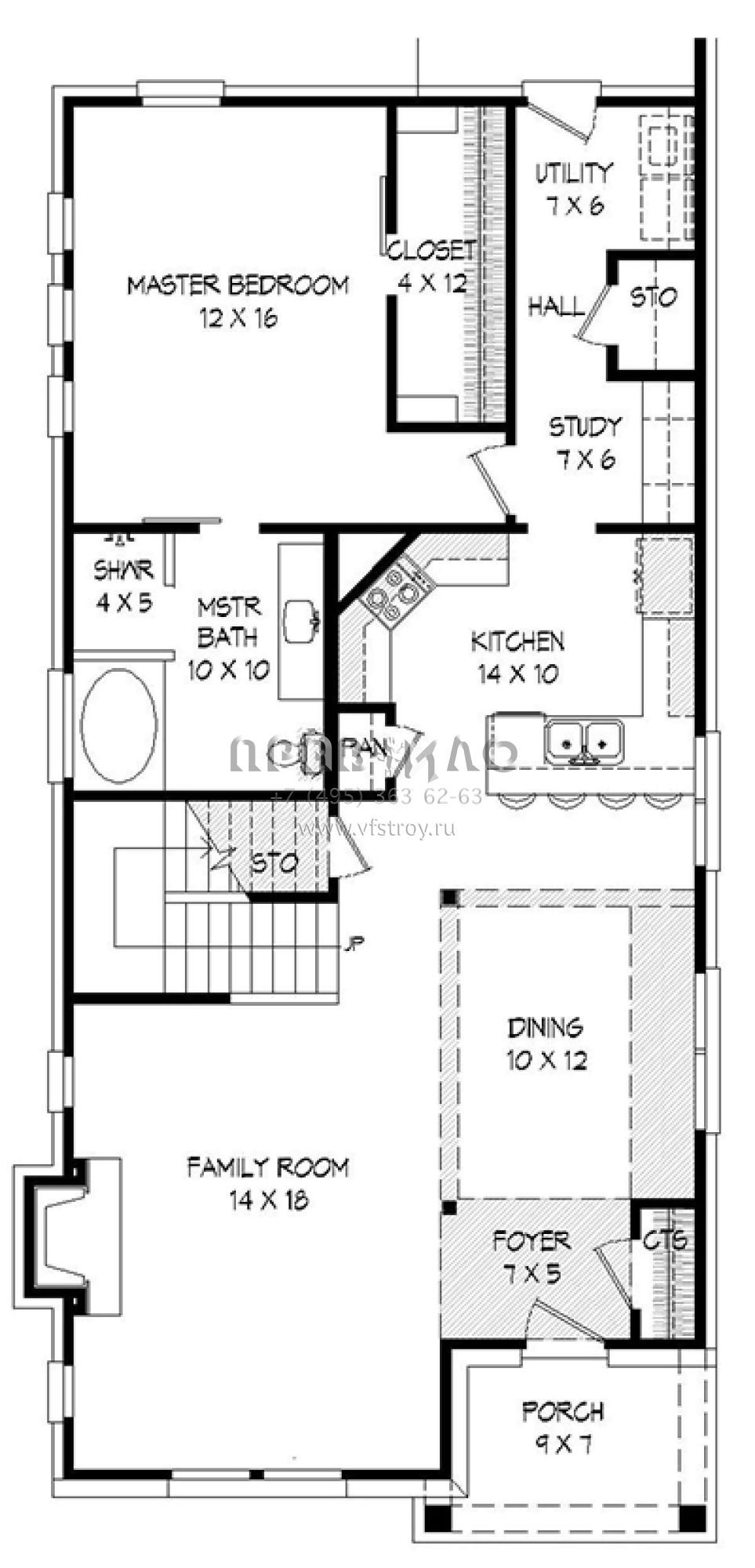 S5-201 (940-00031) Это иностранный проект, для которого требуется адаптация под нормы, действующие в Российской Федерации. Вы видите проект дома в стиле Ранчо. В этом доме сочетаются черты сельской постройки и аскетичность лофта. Внутри жильцы смогут проводить время с максимальным комфортом. Обратим внимание, что сейчас на планировках все размеры представлены в футах. Для перевода в метры вам необходимо значение в футах умножить на 0,3048.