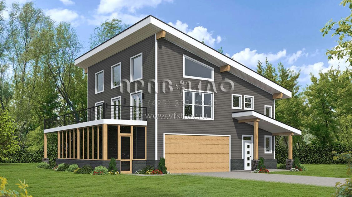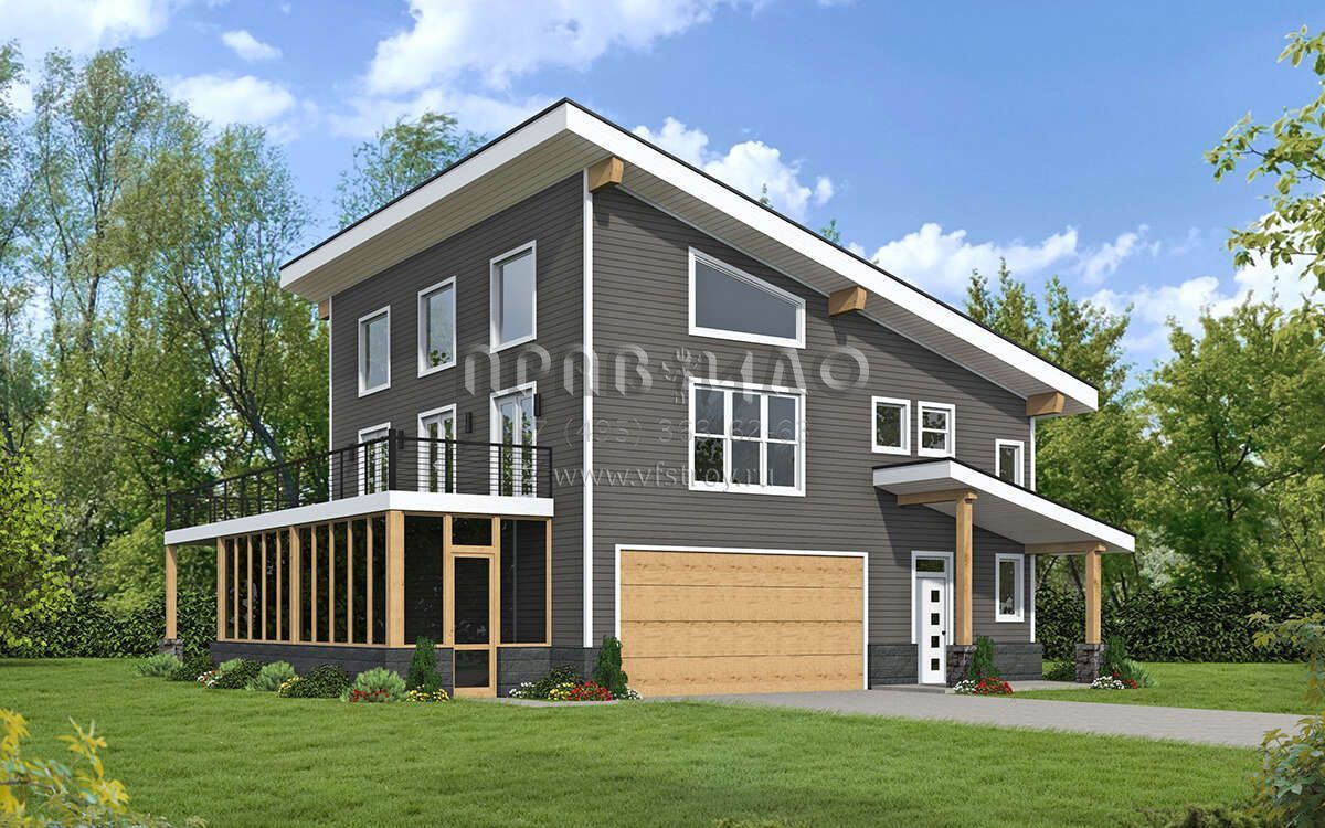 Проект двухэтажного дома с гаражом на две машины в современном стиле S5-201 (940-00796)