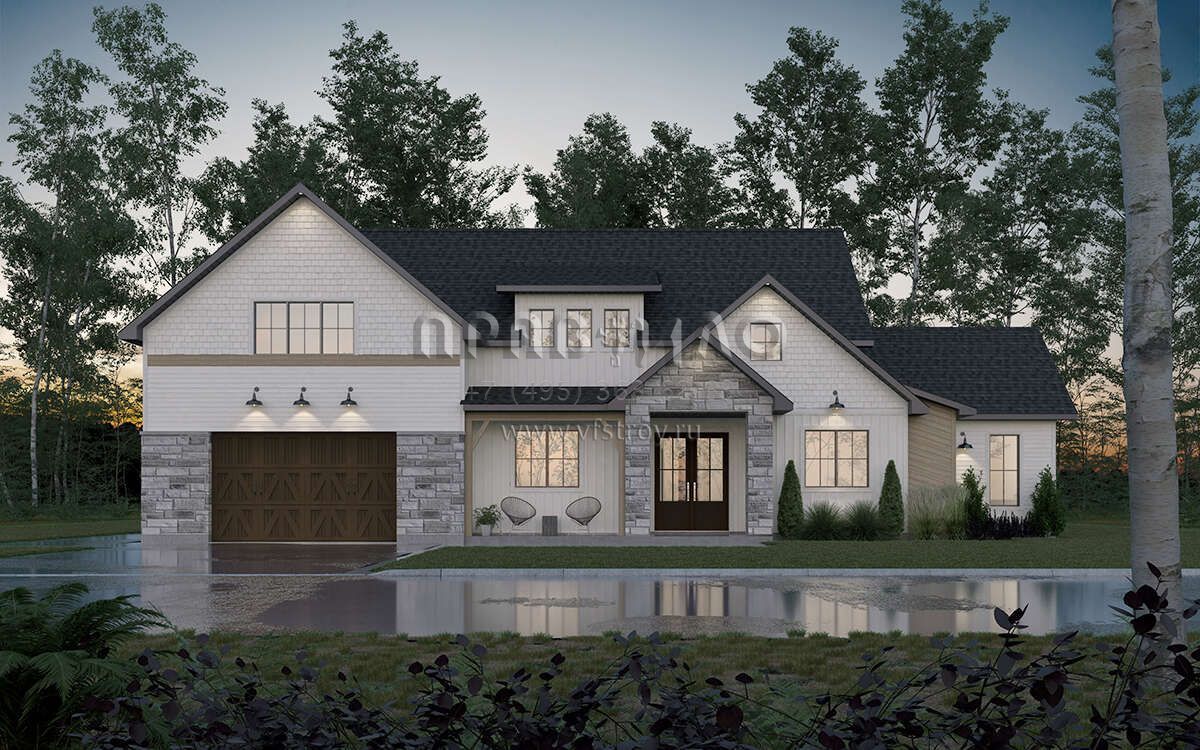 Проект двухэтажного дома с гаражом на одну машину в современном стиле S5-202 (034-01352)
