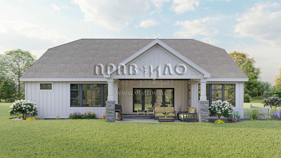 Поскольку этот проект разрабатывался иностранными архитекторами, для строительства дома требуется переработка проекта под действующие в России нормы. Данные визуализации проекта представлены для ознакомления с концепцией проекта. Проект разработан американским архитектурным бюро и представлен America's Best House Plans.