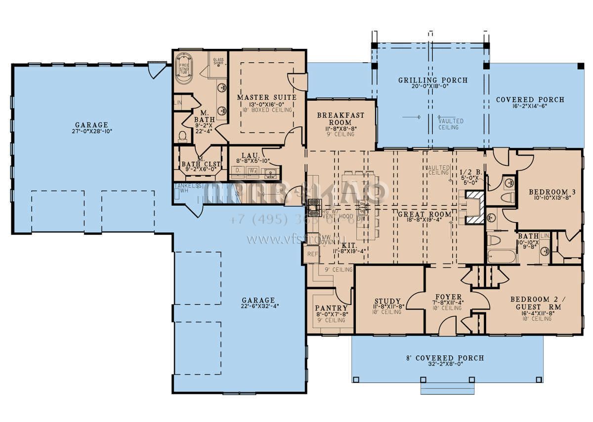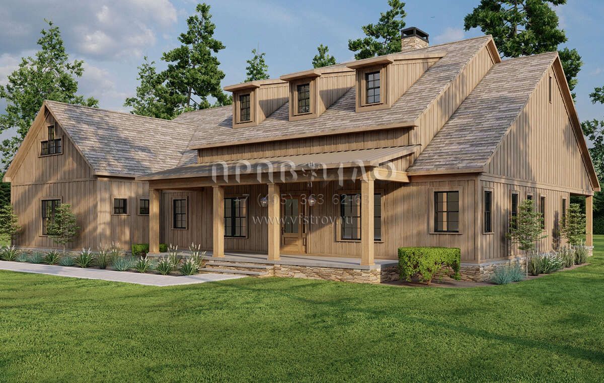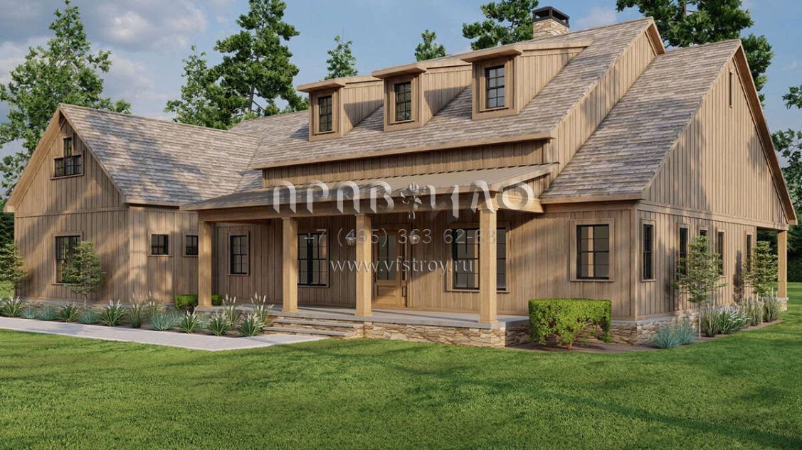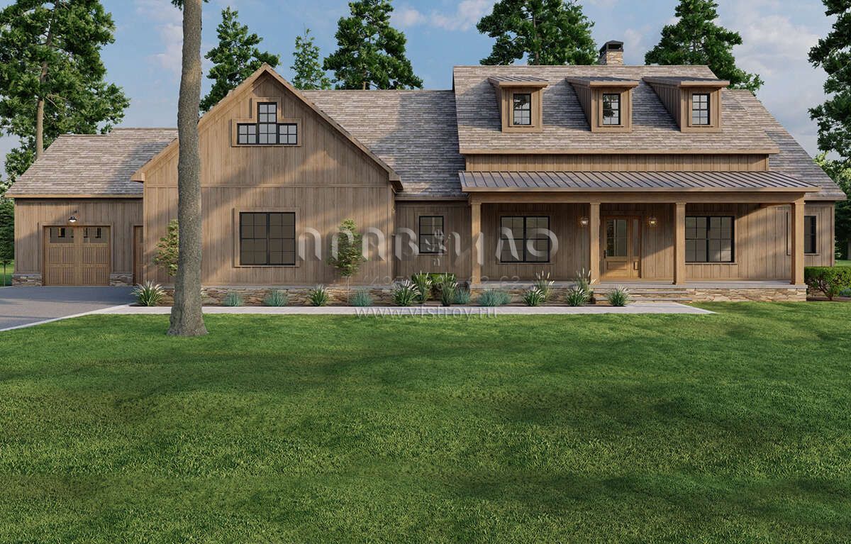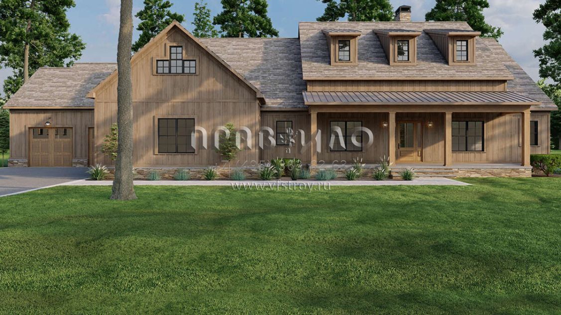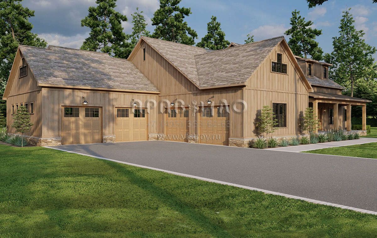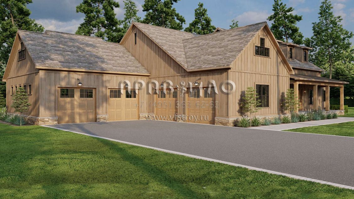 Проект одноэтажного дома с гаражом на три и более машин в стиле Шале S5-202 (8318-00335)