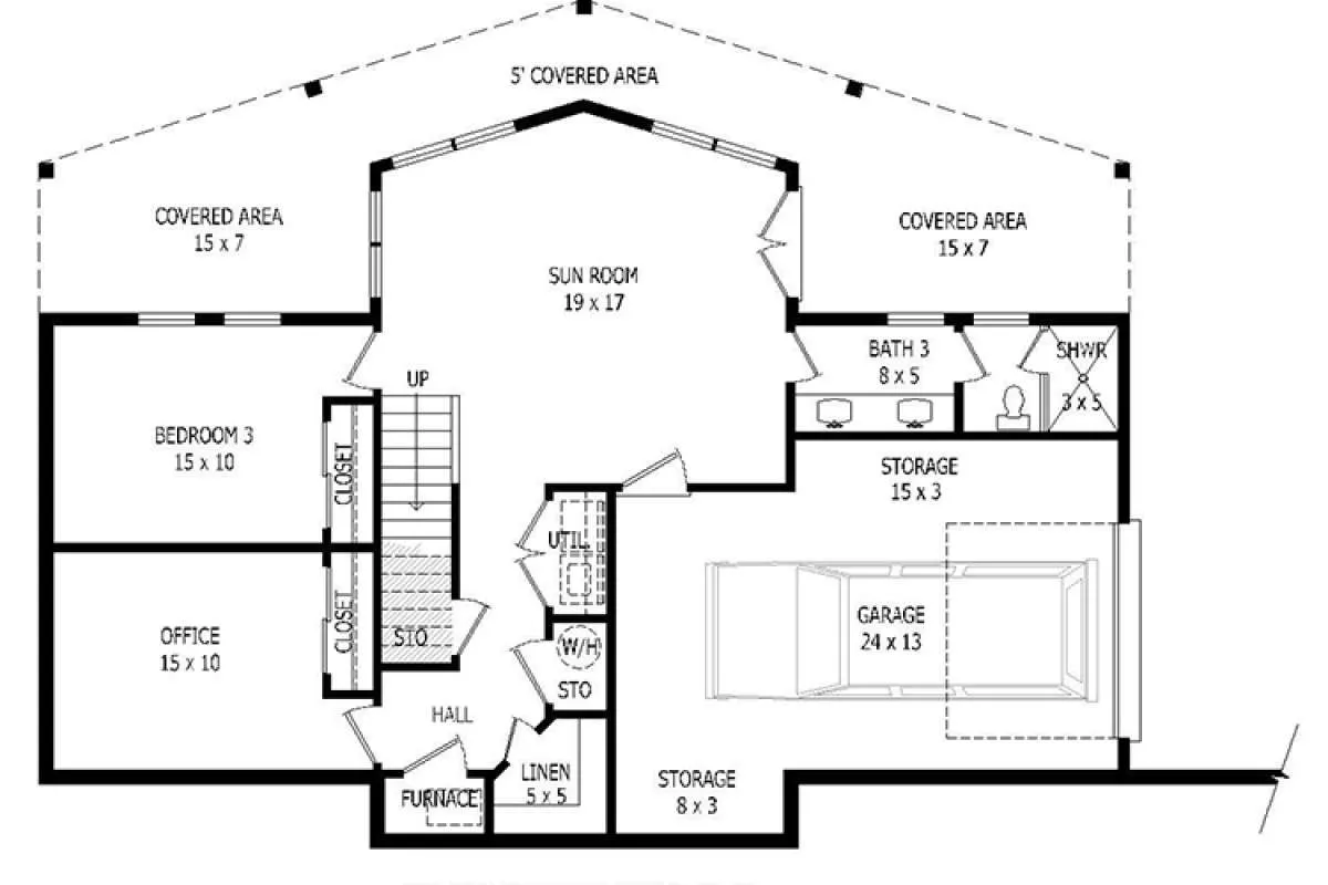 Проект одноэтажного дома с гаражом на одну машину в стиле Ранчо S5-202 (940-00025)