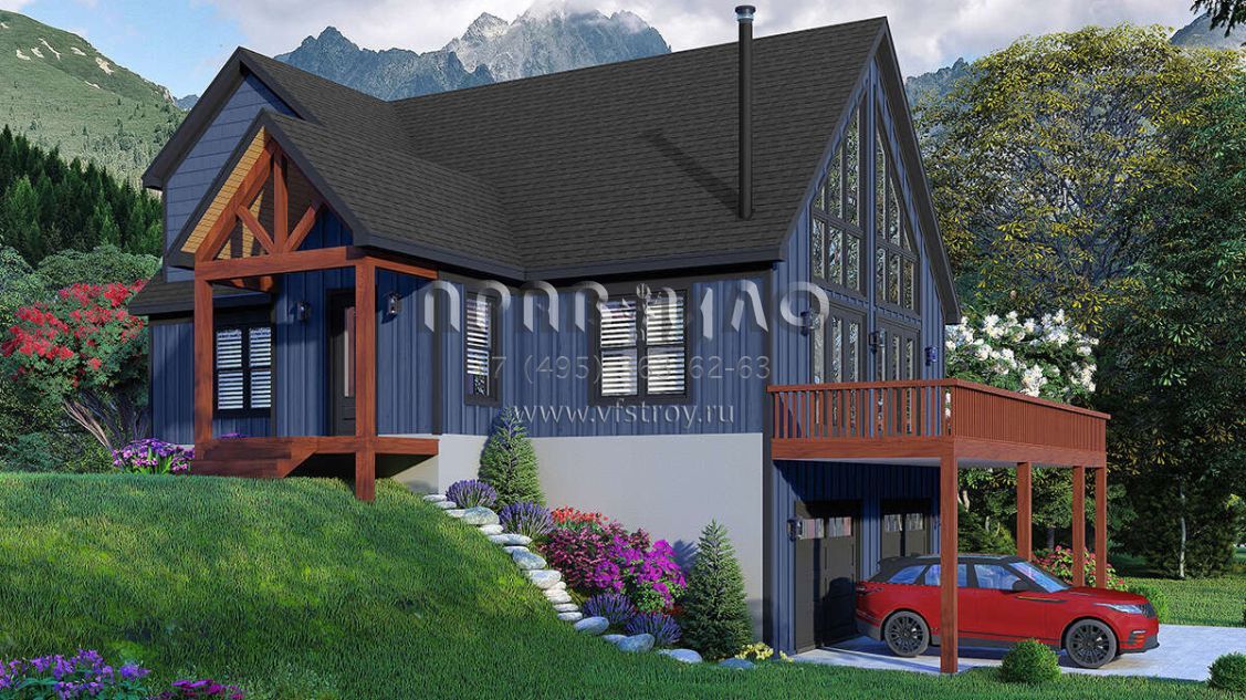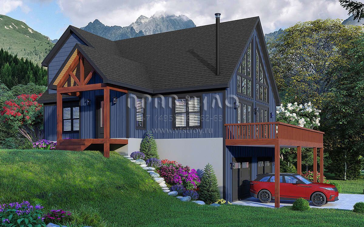 Проект двухэтажного дома с гаражом на три и более машин в стиле Шале S5-202 (940-00777)