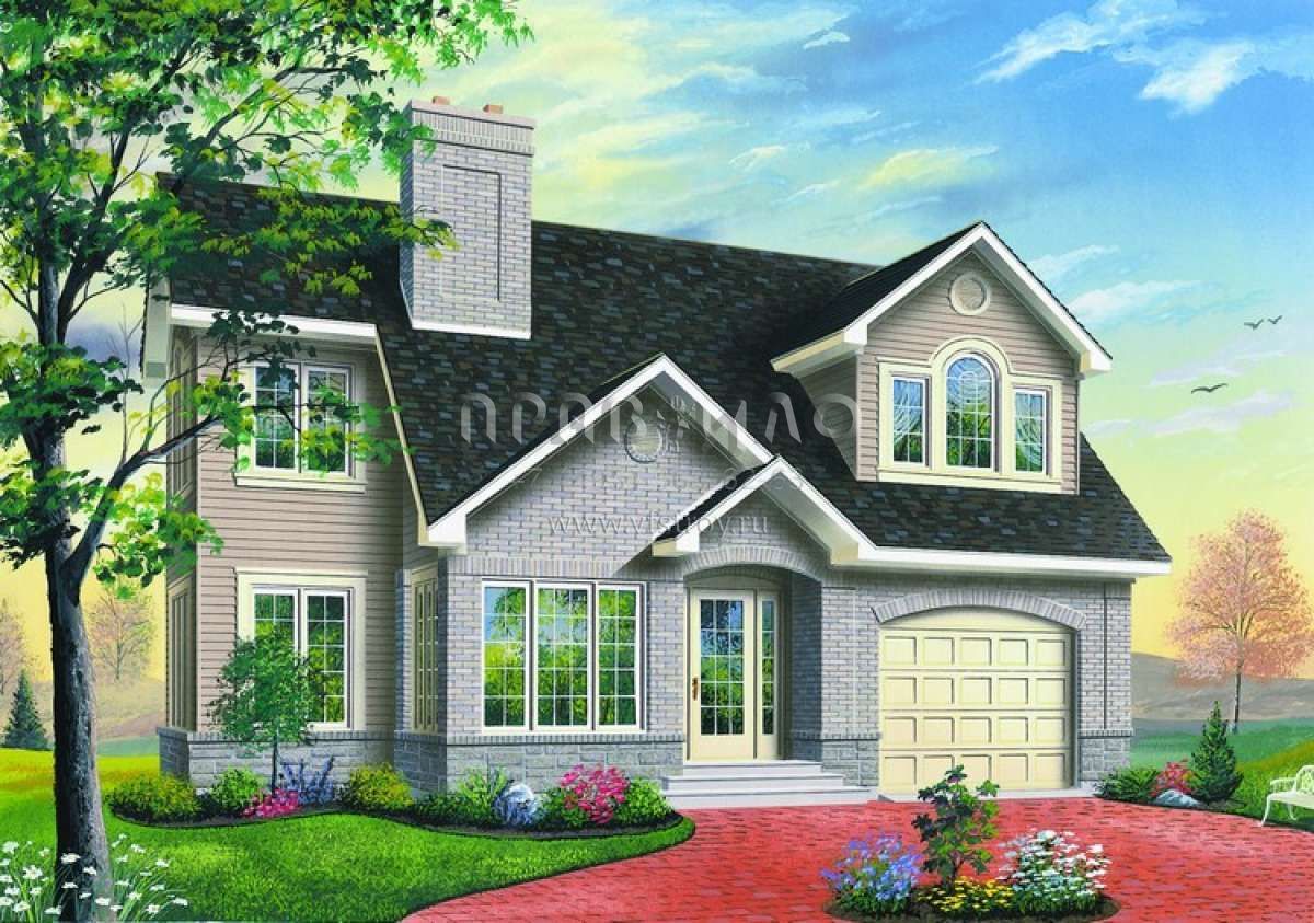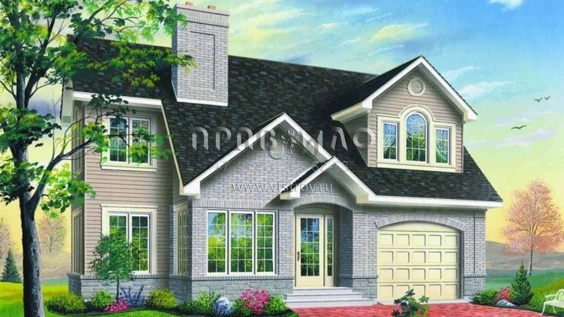 Проект двухэтажного дома с гаражом на одну машину в английском стиле S5-203 (034-00922)