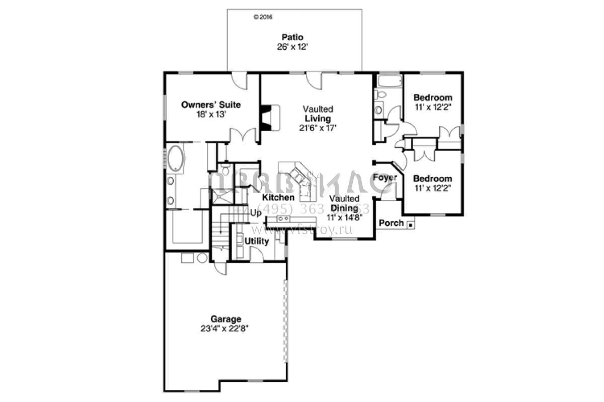 Поскольку этот проект разрабатывался иностранными архитекторами, для строительства дома требуется переработка проекта под действующие в России нормы. Данные визуализации проекта представлены для ознакомления с концепцией проекта. Проект разработан американским архитектурным бюро и представлен America's Best House Plans.