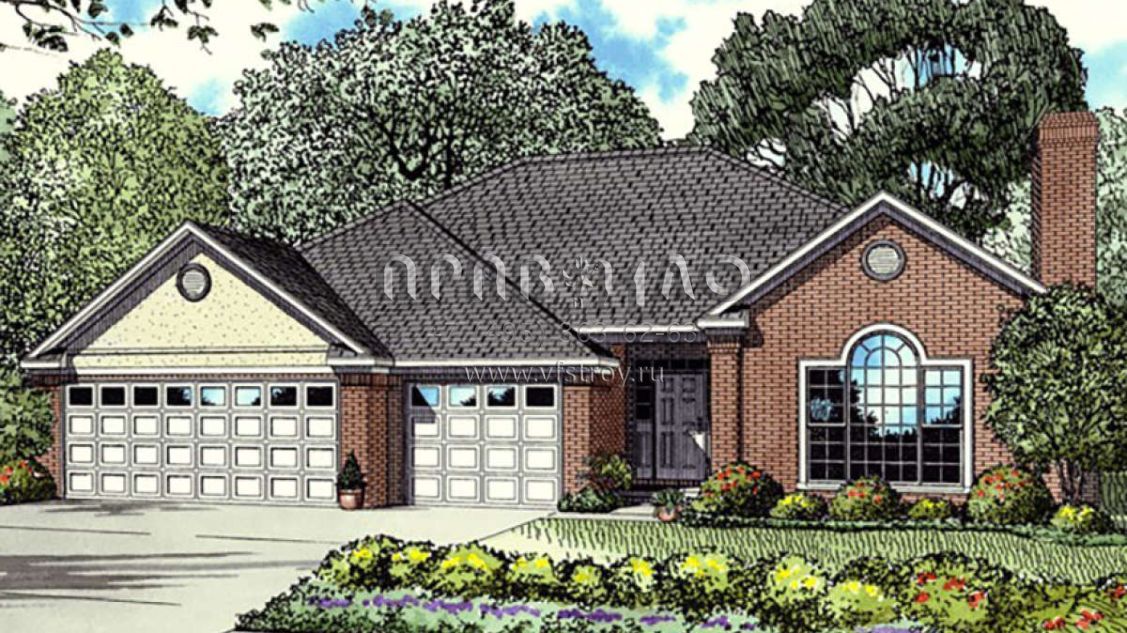 Проект одноэтажного дома с гаражом на три и более машин в стиле Ранчо S5-203 (110-00013)