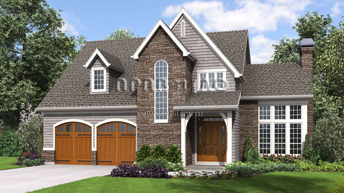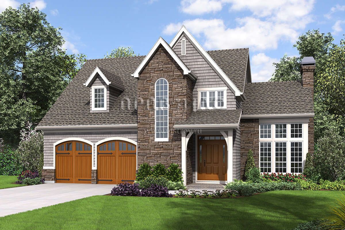 Проект двухэтажного дома с гаражом на две машины в английском стиле S5-203 (2559-00887)