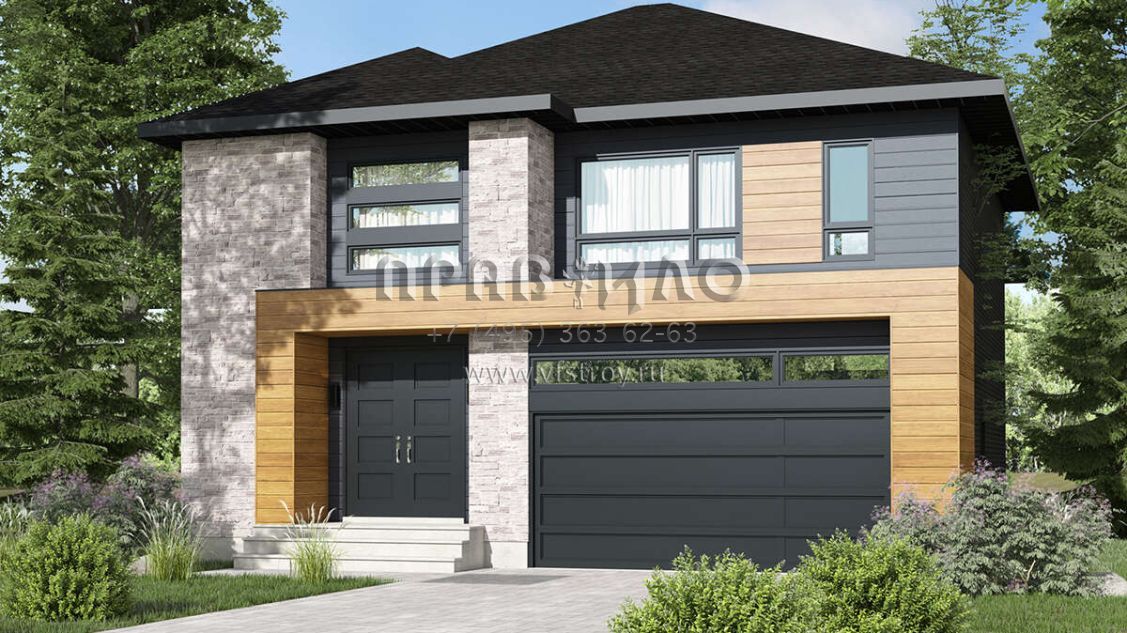 Проект двухэтажного дома с гаражом на две машины в современном стиле S5-203 (6146-00538)