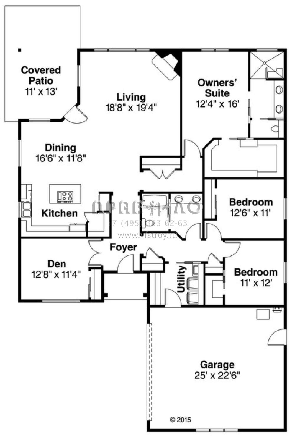 S5-204 (035-00639) Это иностранный проект, для которого требуется адаптация под нормы, действующие в Российской Федерации. Вы видите проект дома в стиле Райт. В этом доме сочетаются черты сельской постройки и аскетичность лофта. Внутри жильцы смогут проводить время с максимальным комфортом. Обратим внимание, что сейчас на планировках все размеры представлены в футах. Для перевода в метры вам необходимо значение в футах умножить на 0,3048.