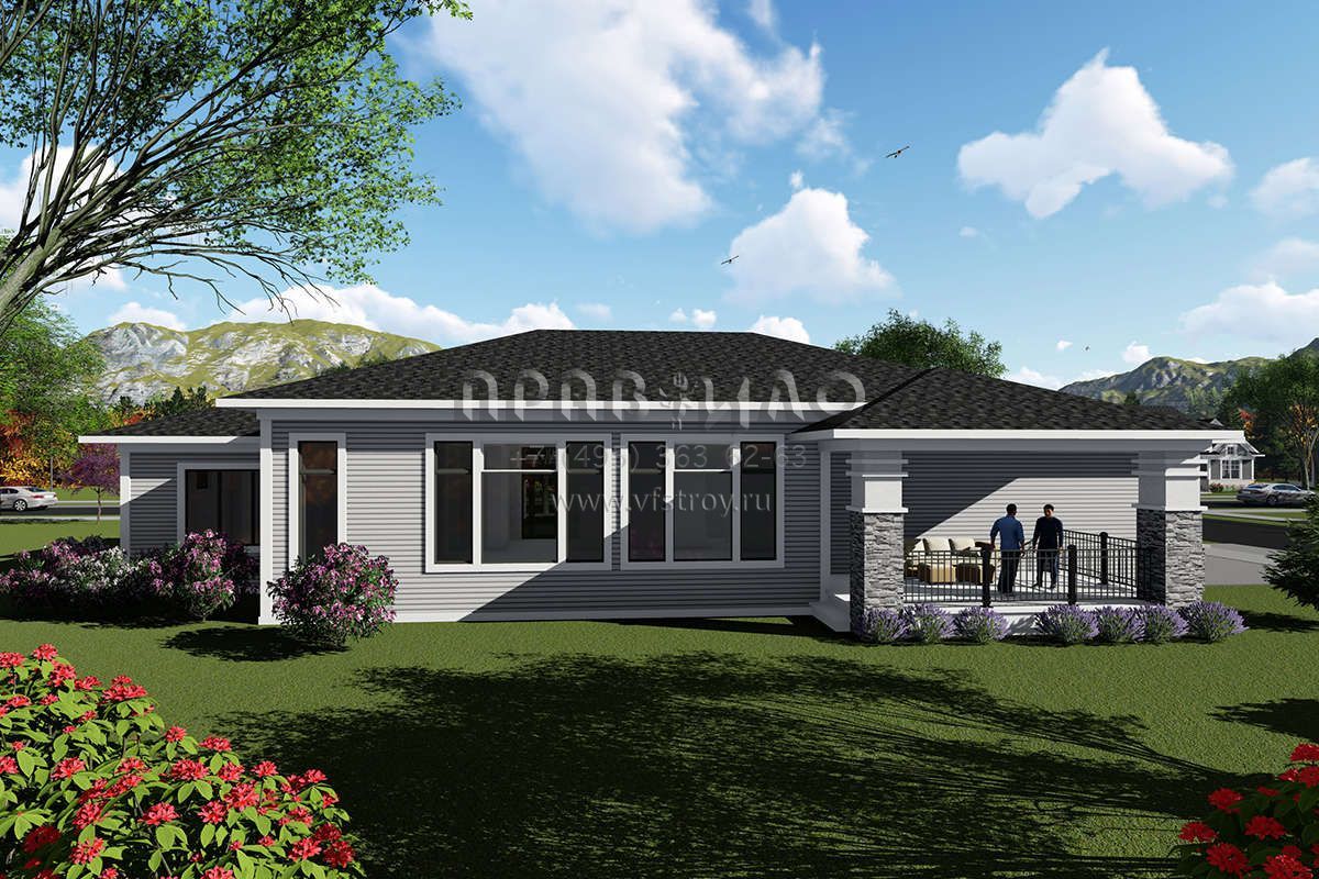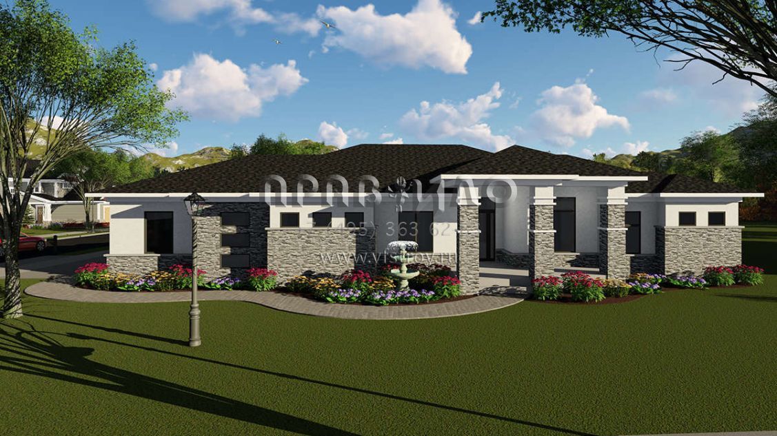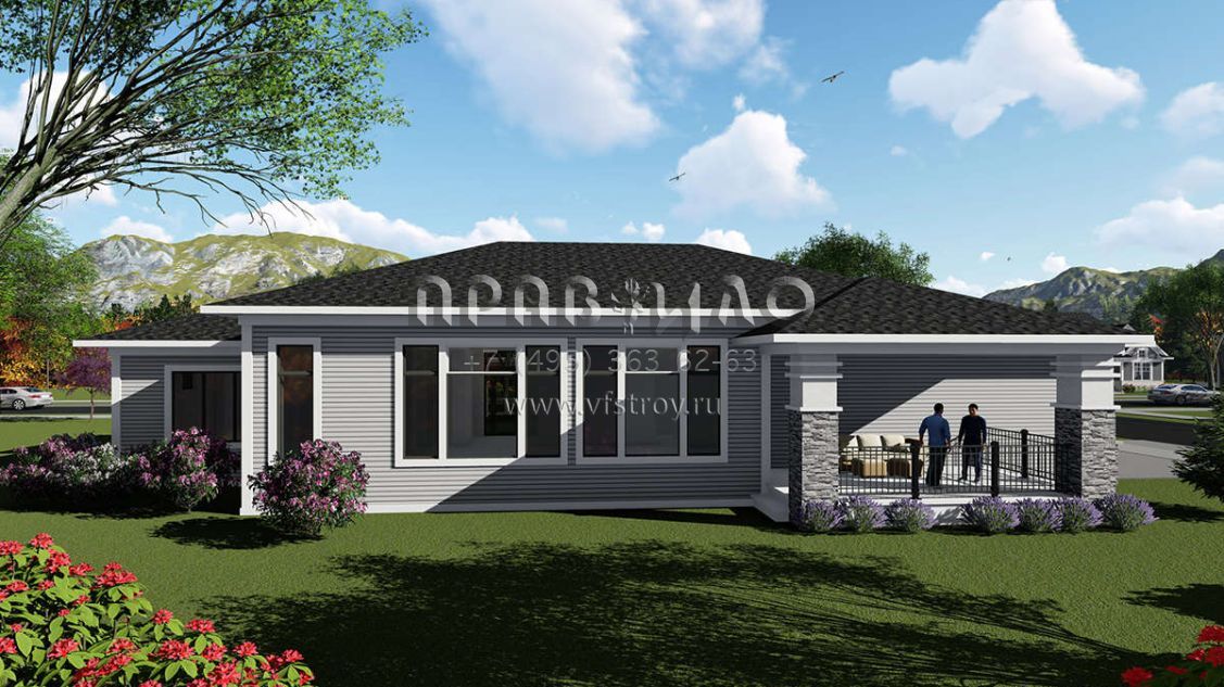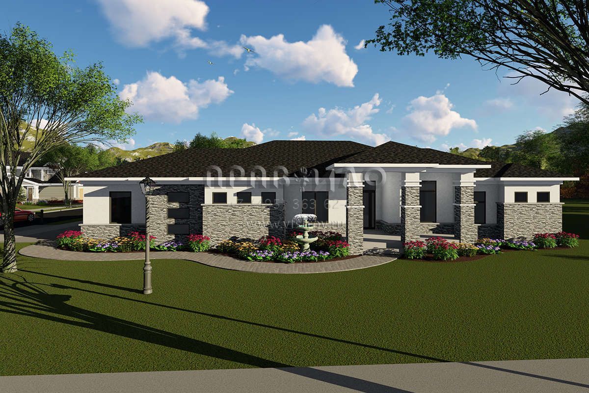 Проект одноэтажного дома с гаражом на три и более машин в стиле Райт S5-204 (1020-00032)
