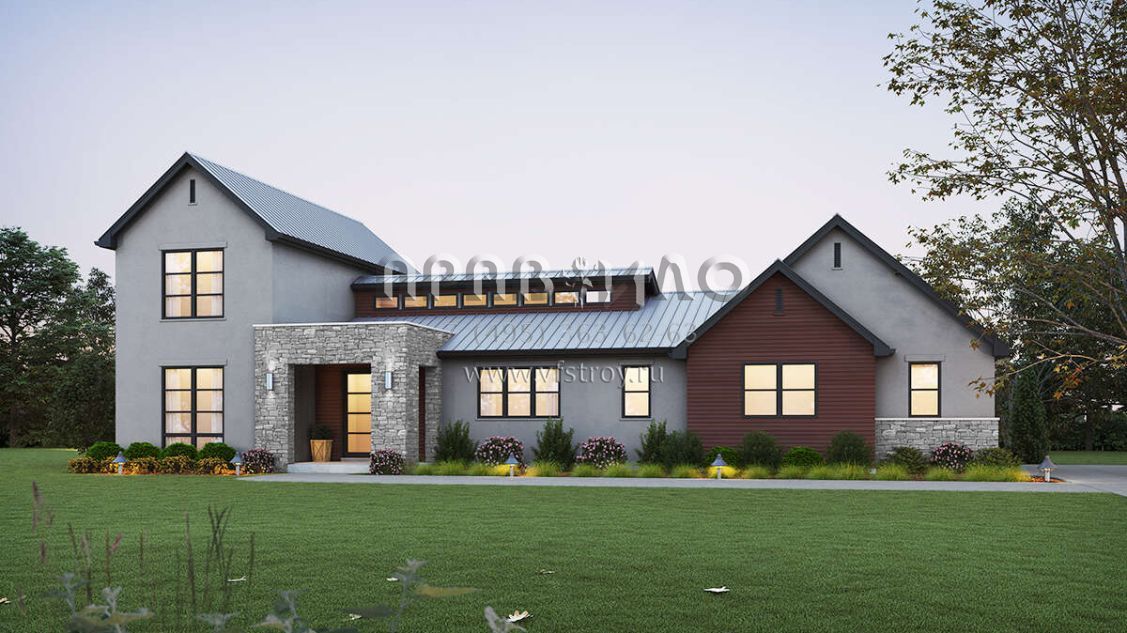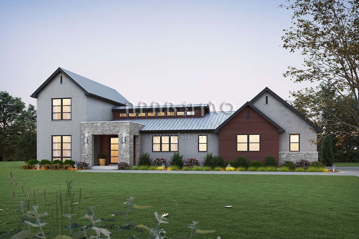 Проект двухэтажного дома с гаражом на три и более машин в современном стиле S5-204 (2559-00956)