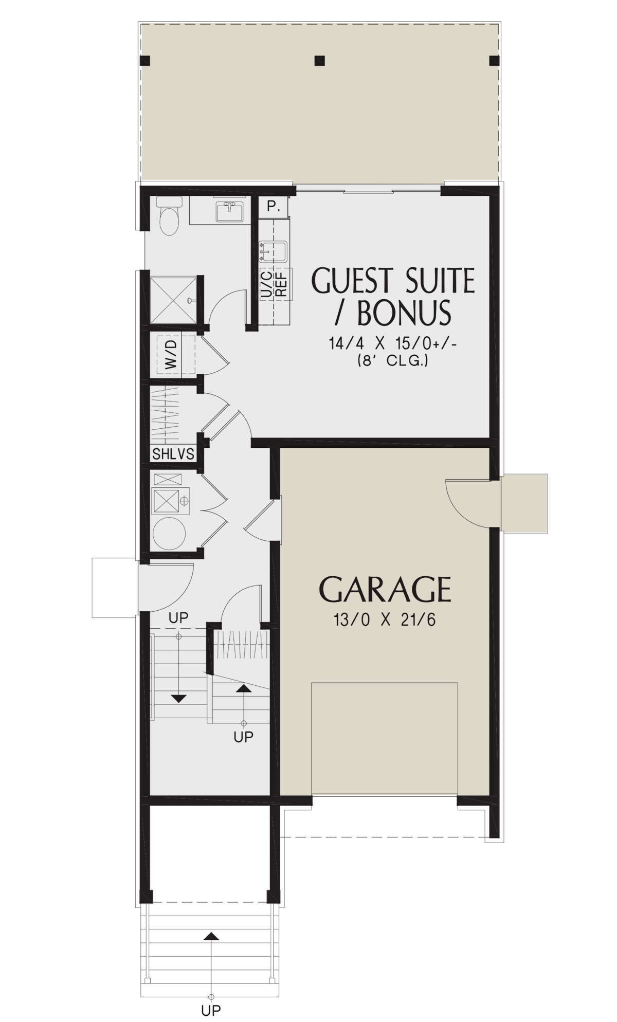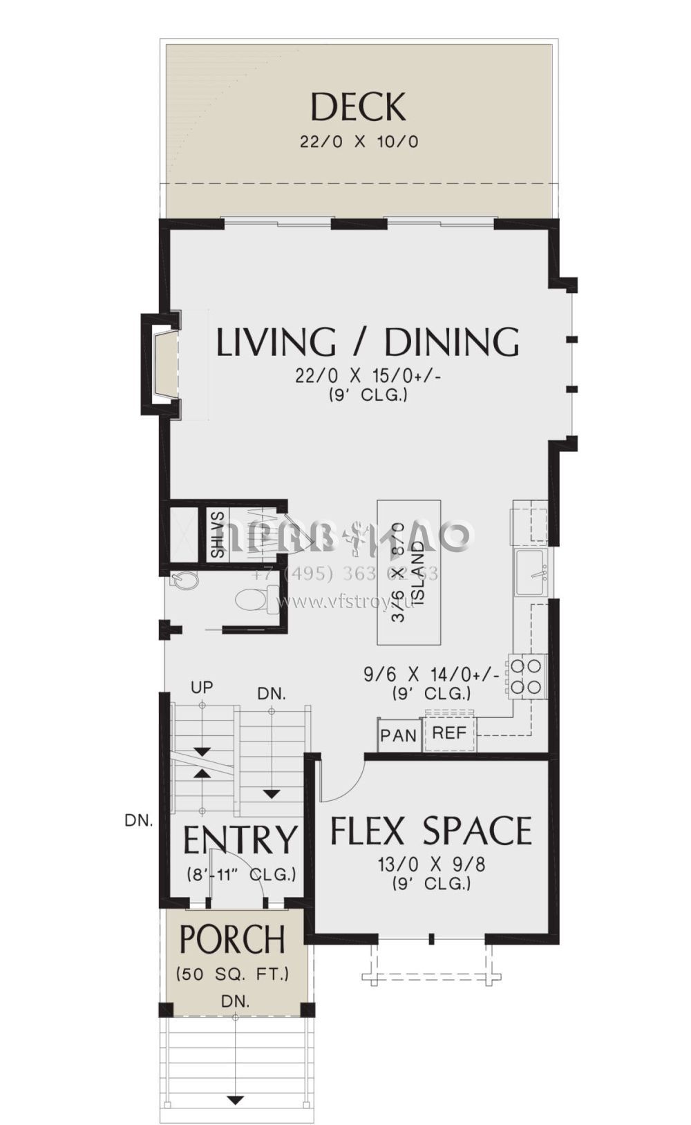 Проект трехэтажного дома с гаражом на одну машину в стиле Ранчо S5-204 (2559-01017)