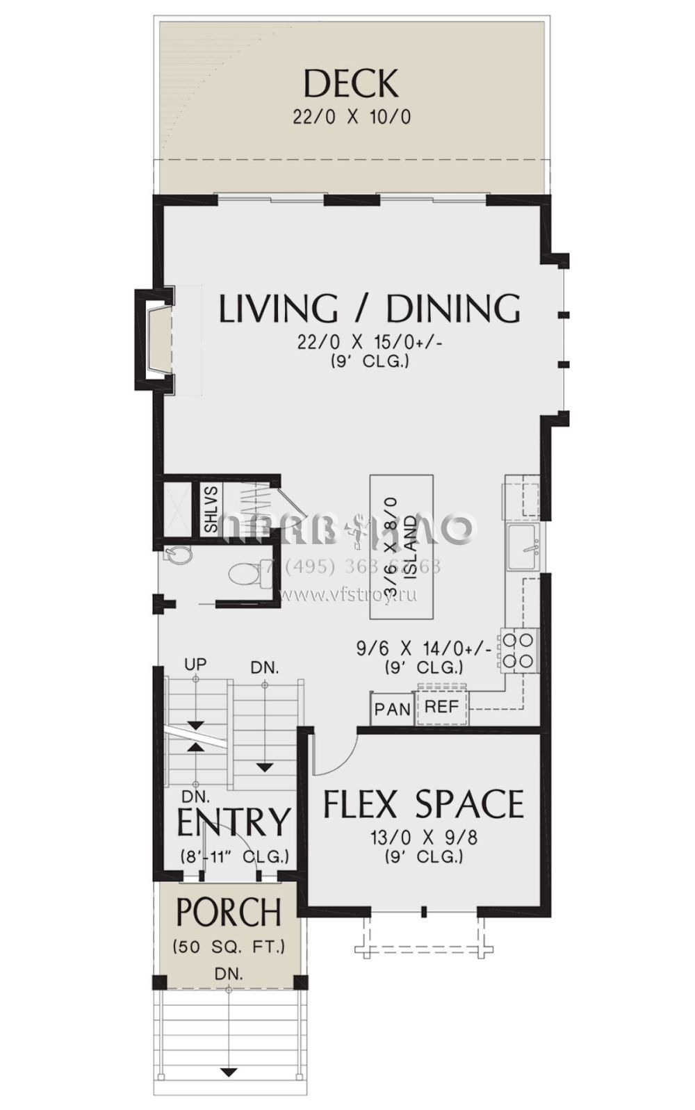 Проект трехэтажного дома с гаражом на одну машину в стиле Ранчо S5-204 (2559-01018)