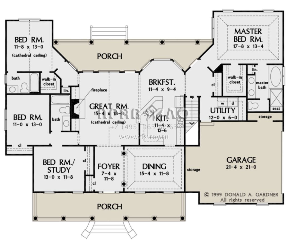 Проект одноэтажного дома с гаражом на две машины в стиле Ранчо S5-204 (2865-00089)