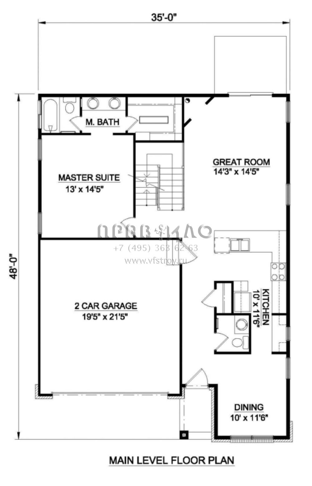 S5-204 (340-00029) Это иностранный проект, для которого требуется адаптация под нормы, действующие в Российской Федерации. Вы видите проект дома в стиле Ранчо. В этом доме сочетаются черты сельской постройки и аскетичность лофта. Внутри жильцы смогут проводить время с максимальным комфортом. Обратим внимание, что сейчас на планировках все размеры представлены в футах. Для перевода в метры вам необходимо значение в футах умножить на 0,3048.
