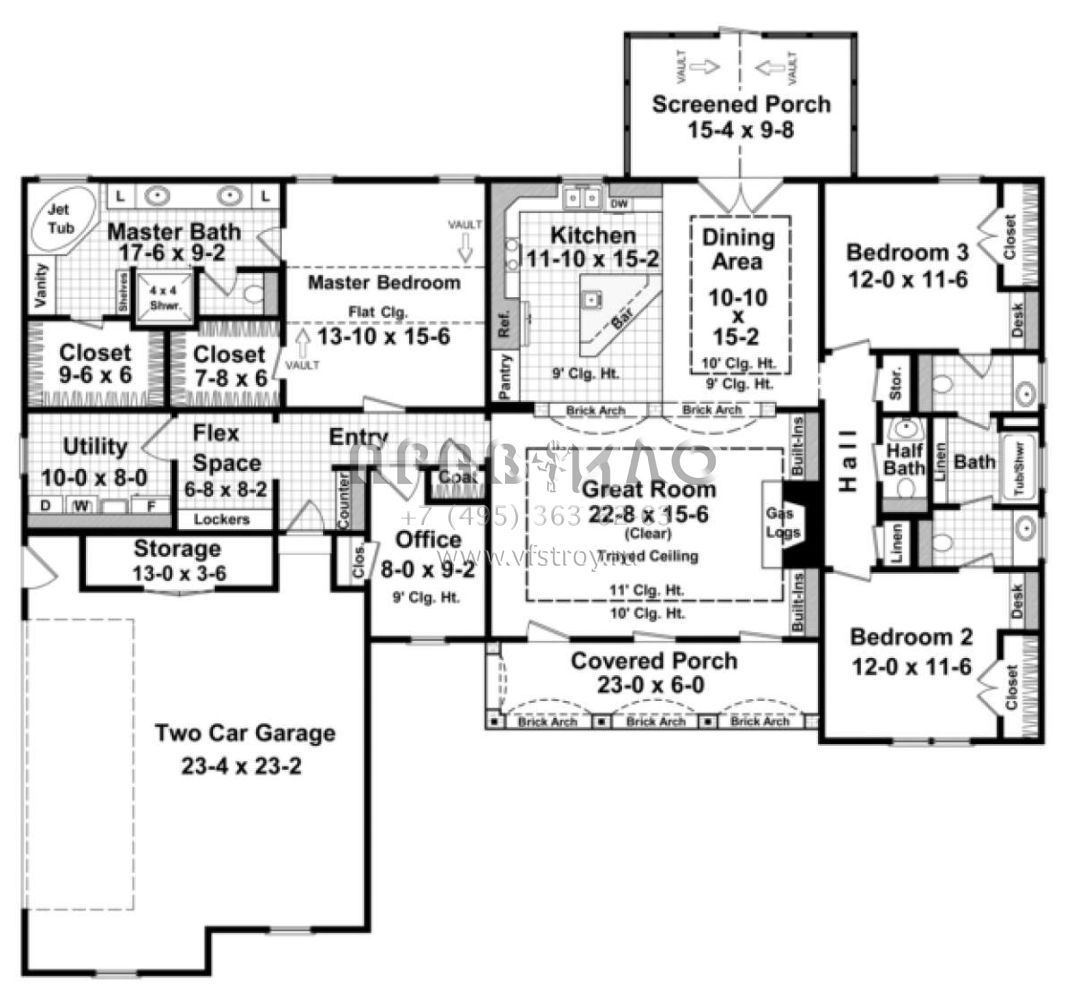 Проект одноэтажного дома с гаражом на две машины в стиле Ранчо S5-204 (348-00129)
