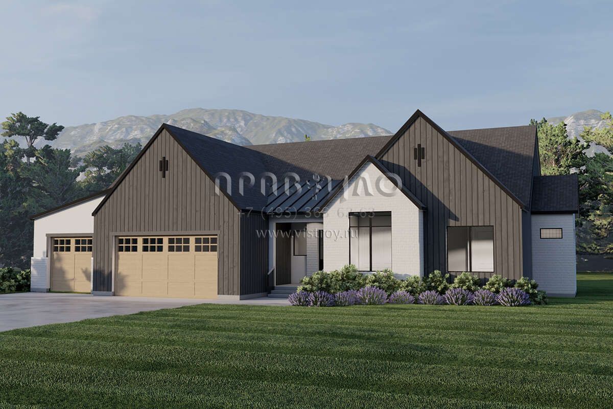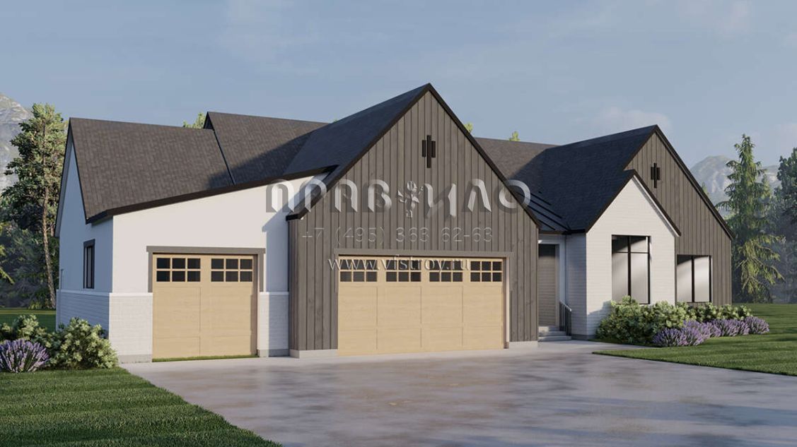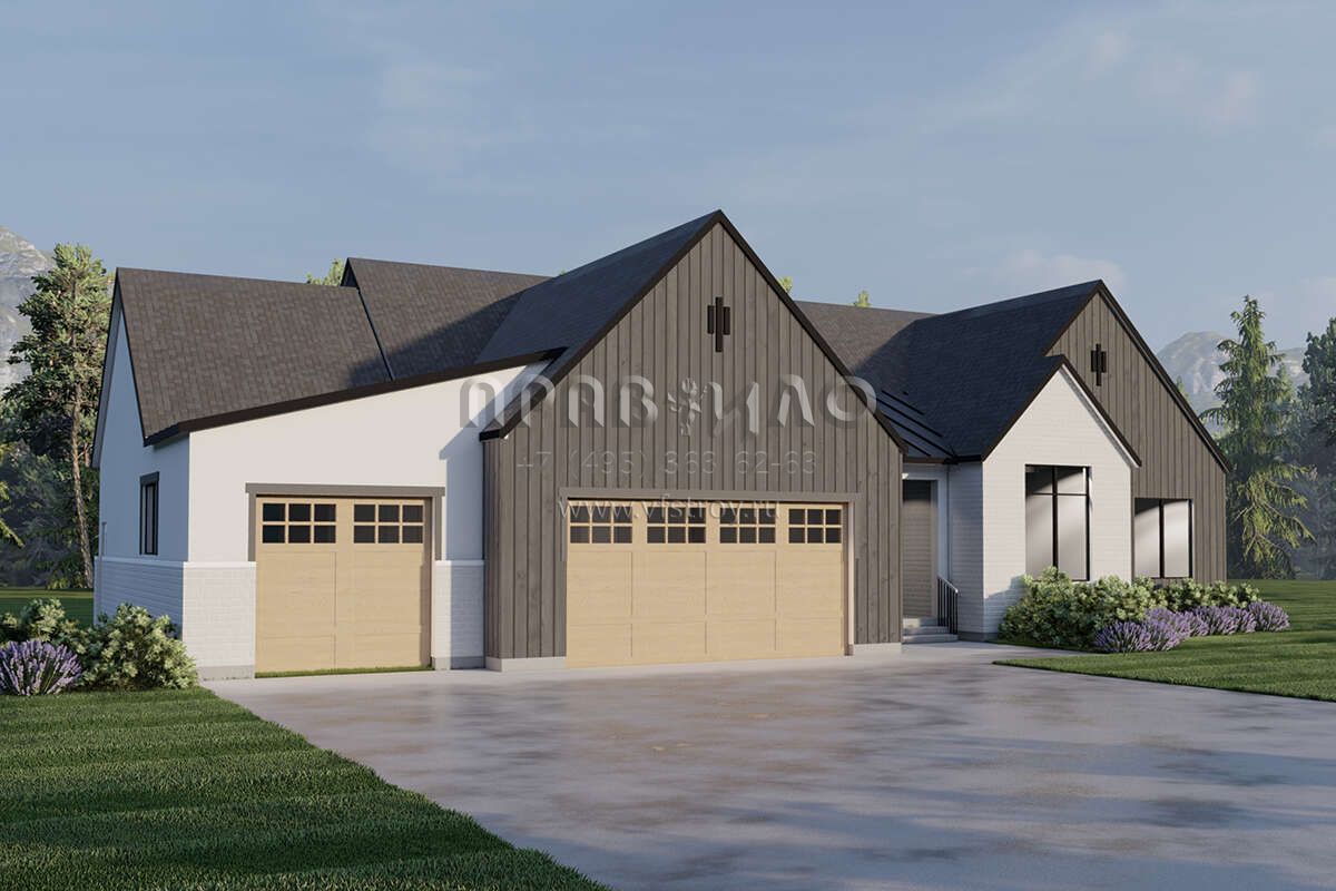 Проект одноэтажного дома с гаражом на три и более машин в современном стиле S5-204 (6422-00016)