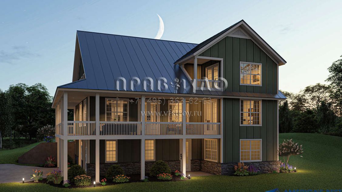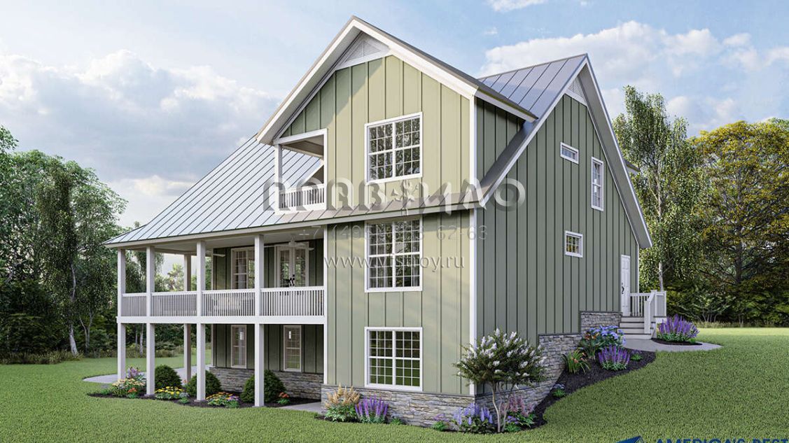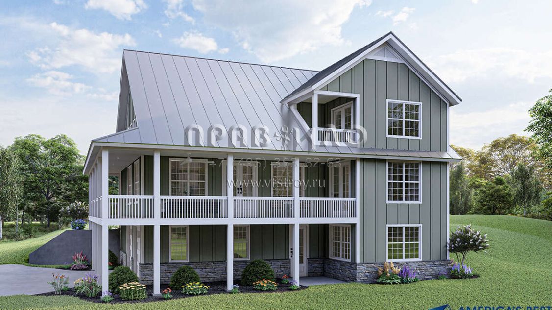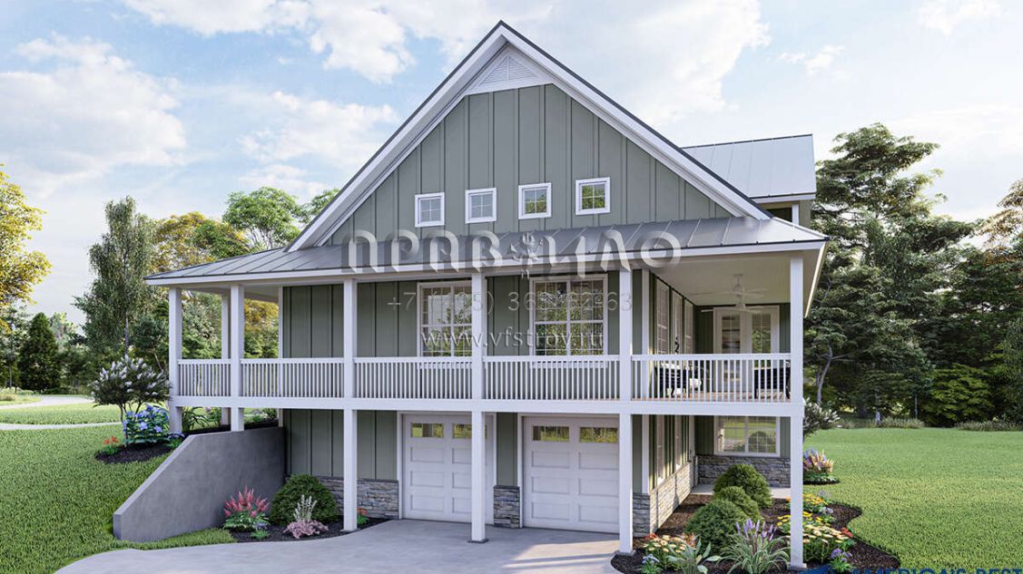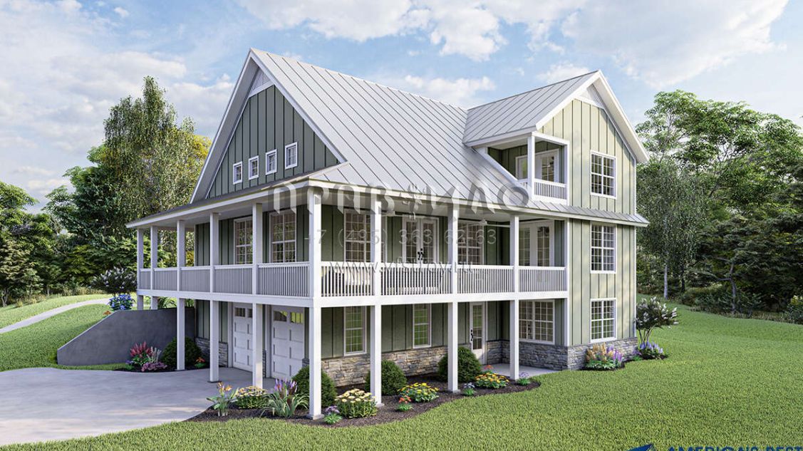 Проект двухэтажного дома с гаражом на две машины в стиле Ранчо S5-204 (940-00181)
