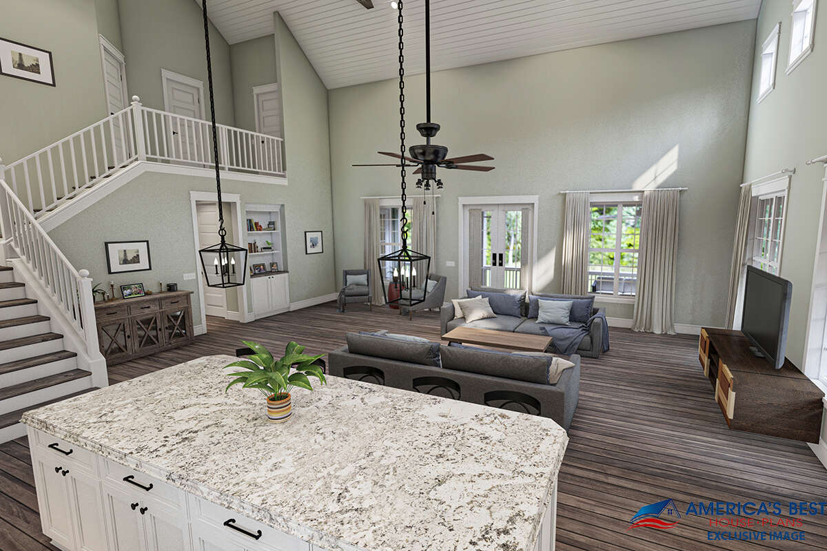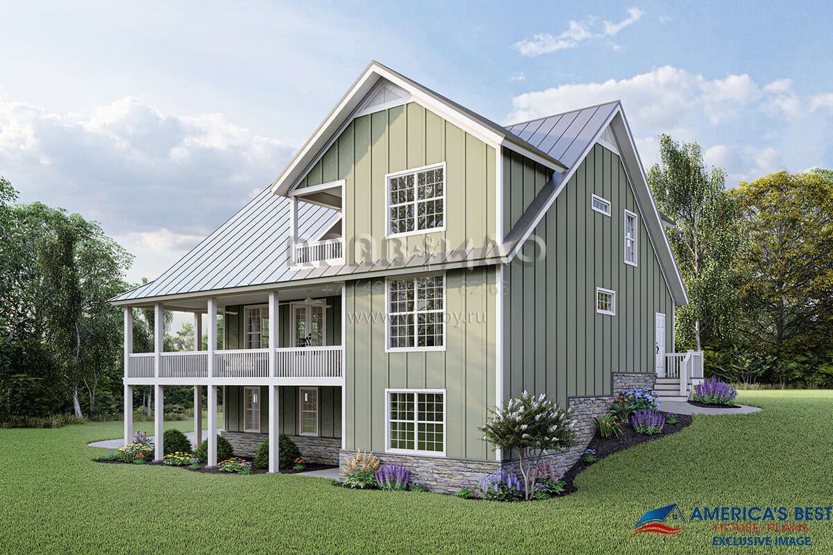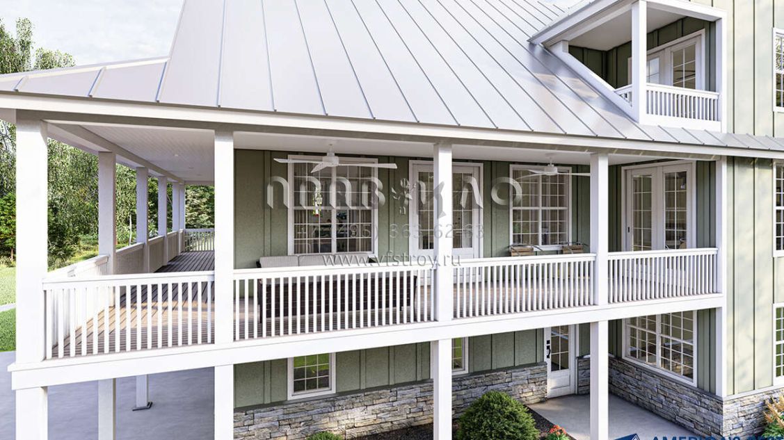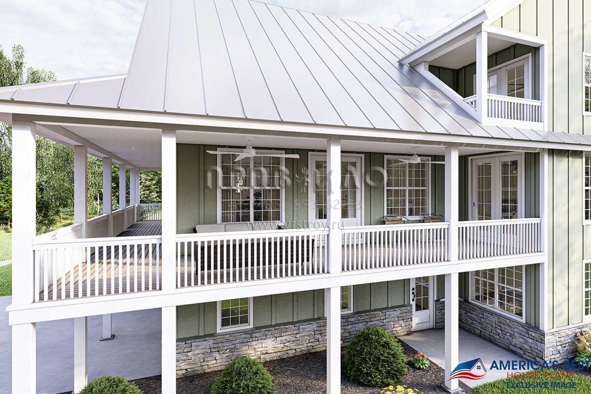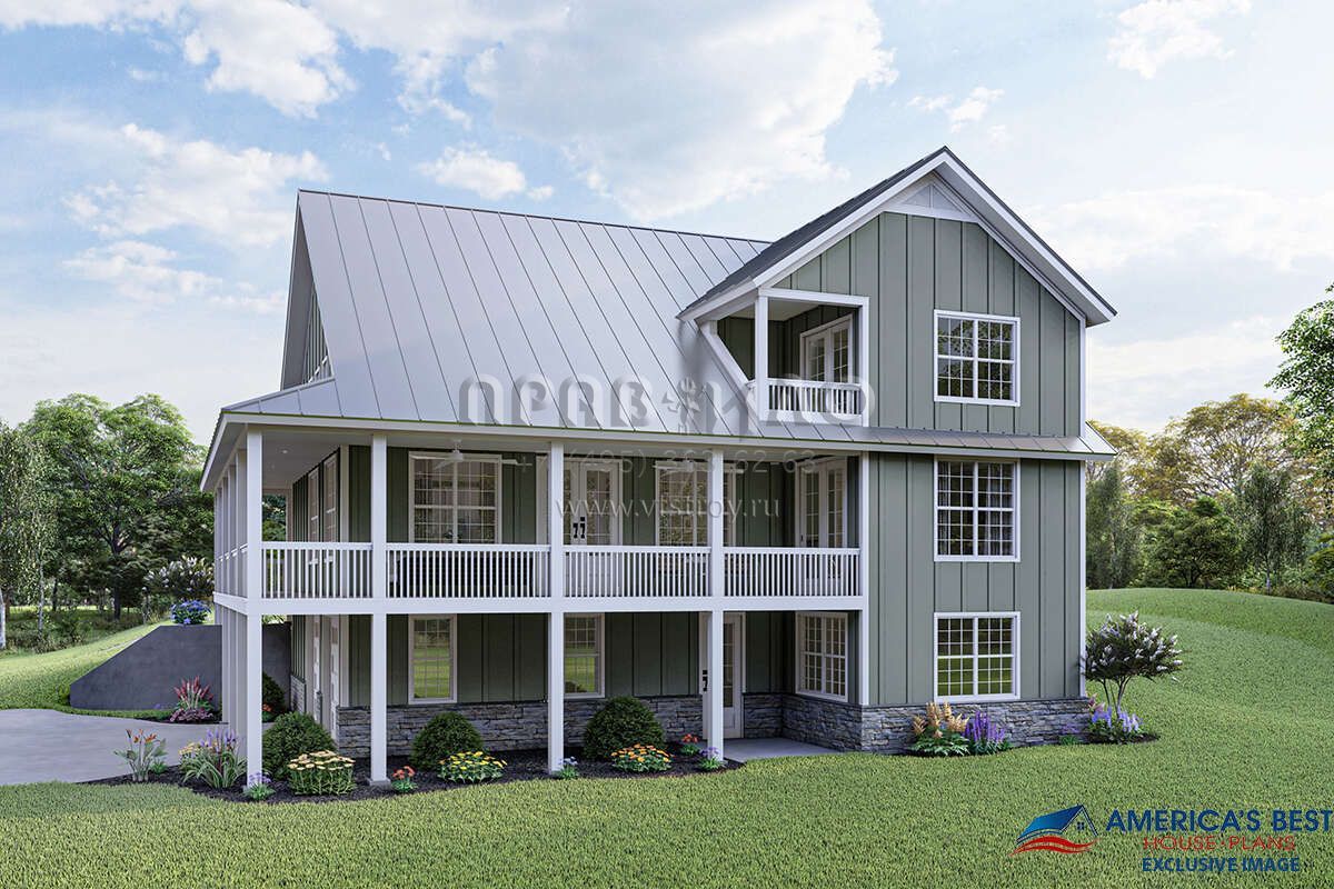 Проект двухэтажного дома с гаражом на две машины в стиле Ранчо S5-204 (940-00181)