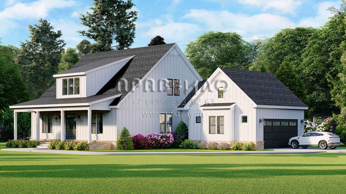 Проект двухэтажного дома с гаражом на две машины в современном стиле S5-204 (940-00657)