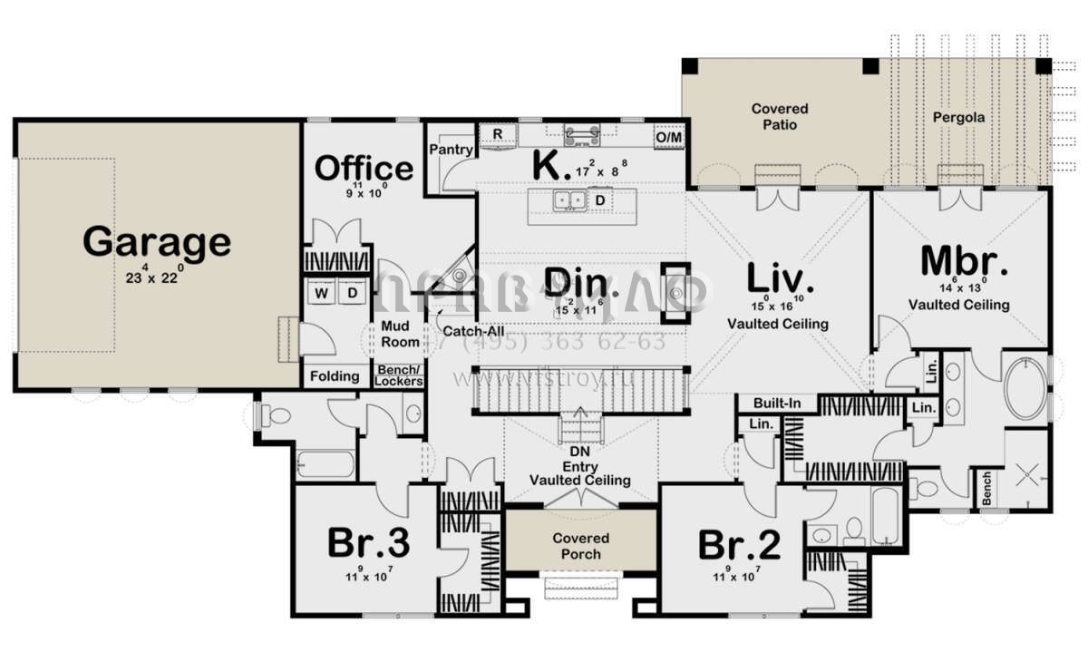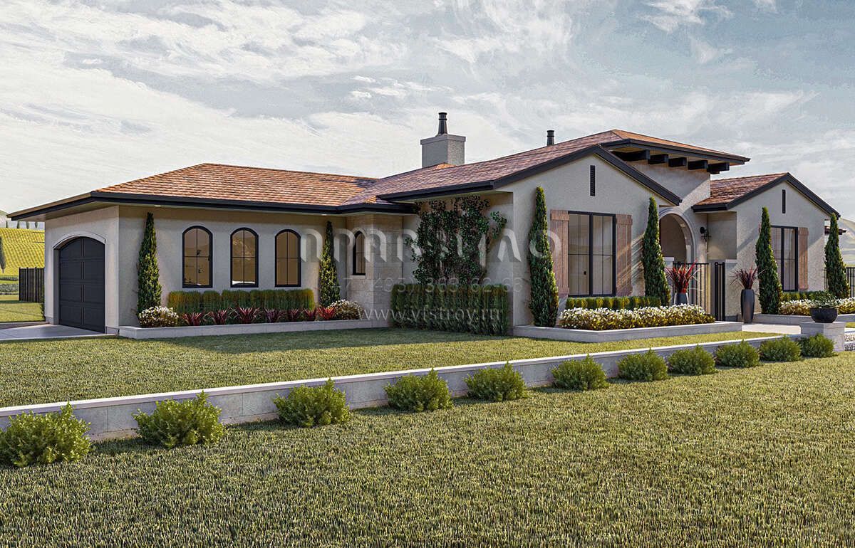 Проект одноэтажного дома с гаражом на две машины в прибрежном стиле S5-204 (963-00727)
