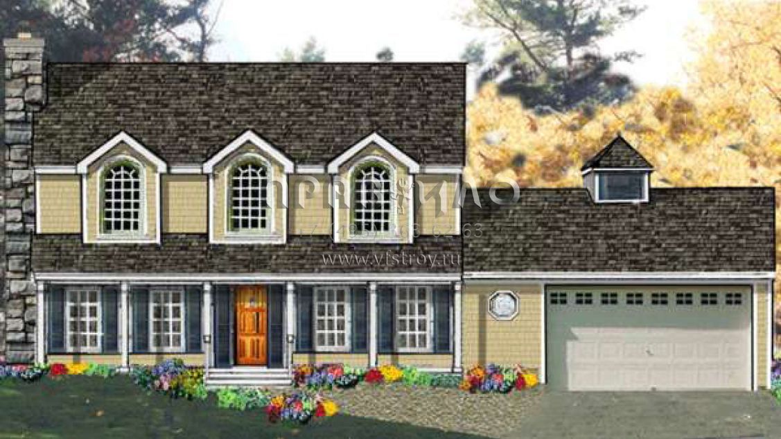 Проект двухэтажного дома с гаражом на две машины в стиле Ранчо S5-205 (033-00023)