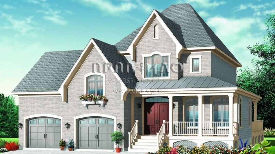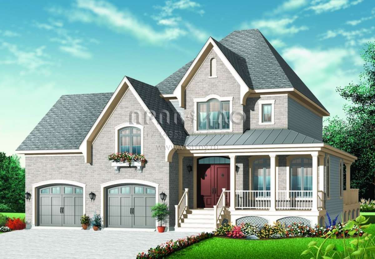 Проект двухэтажного дома с гаражом на две машины в стиле Ранчо S5-205 (034-00717)