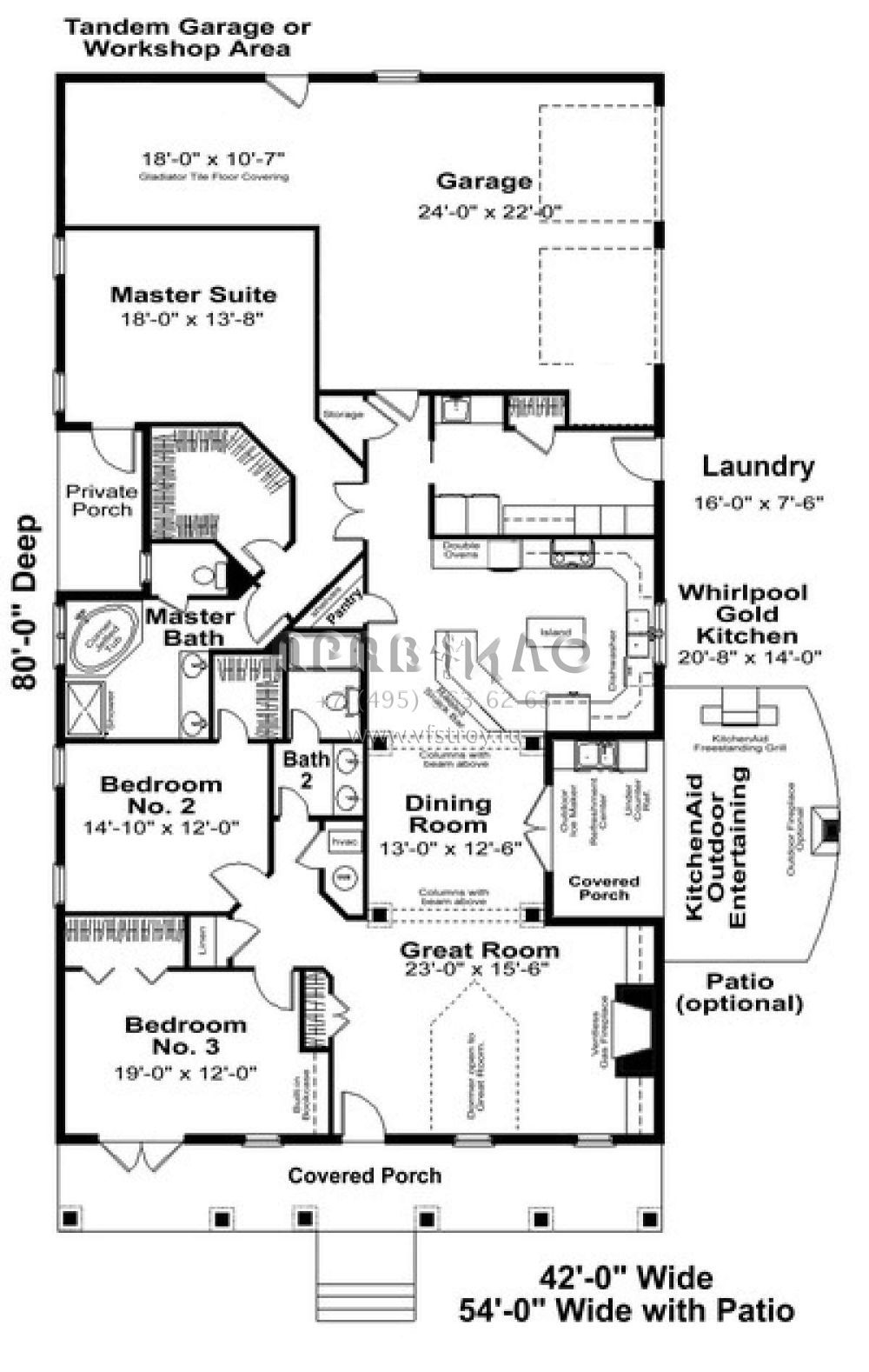 Проект одноэтажного дома с гаражом на две машины в стиле Ранчо S5-205 (1776-00060)