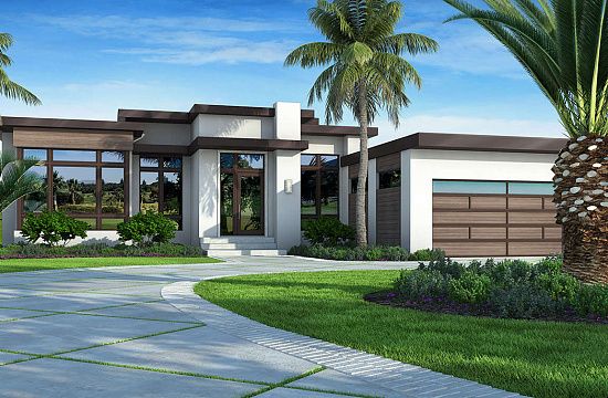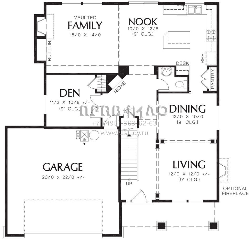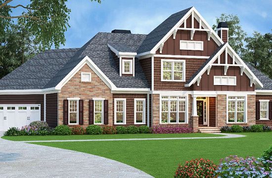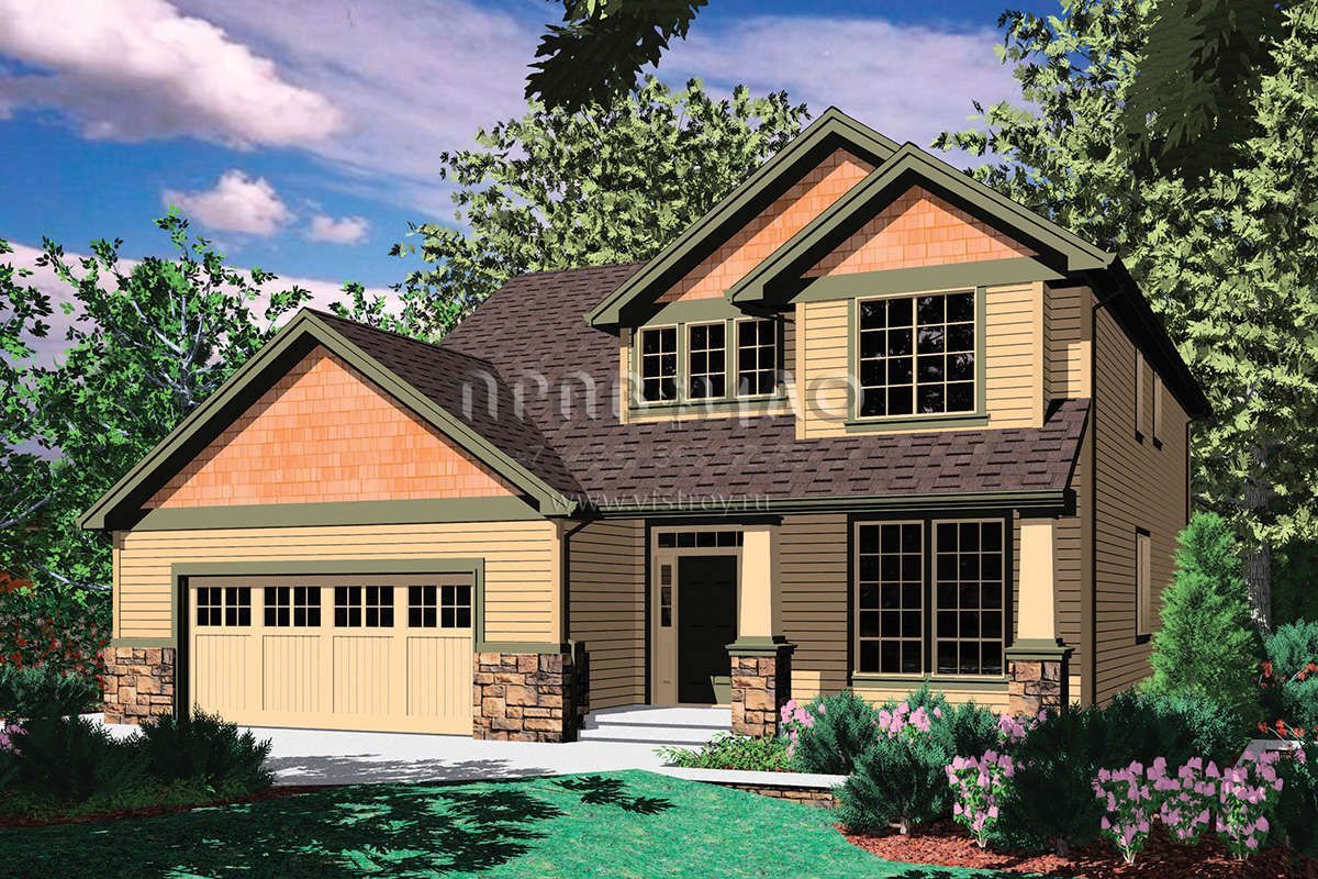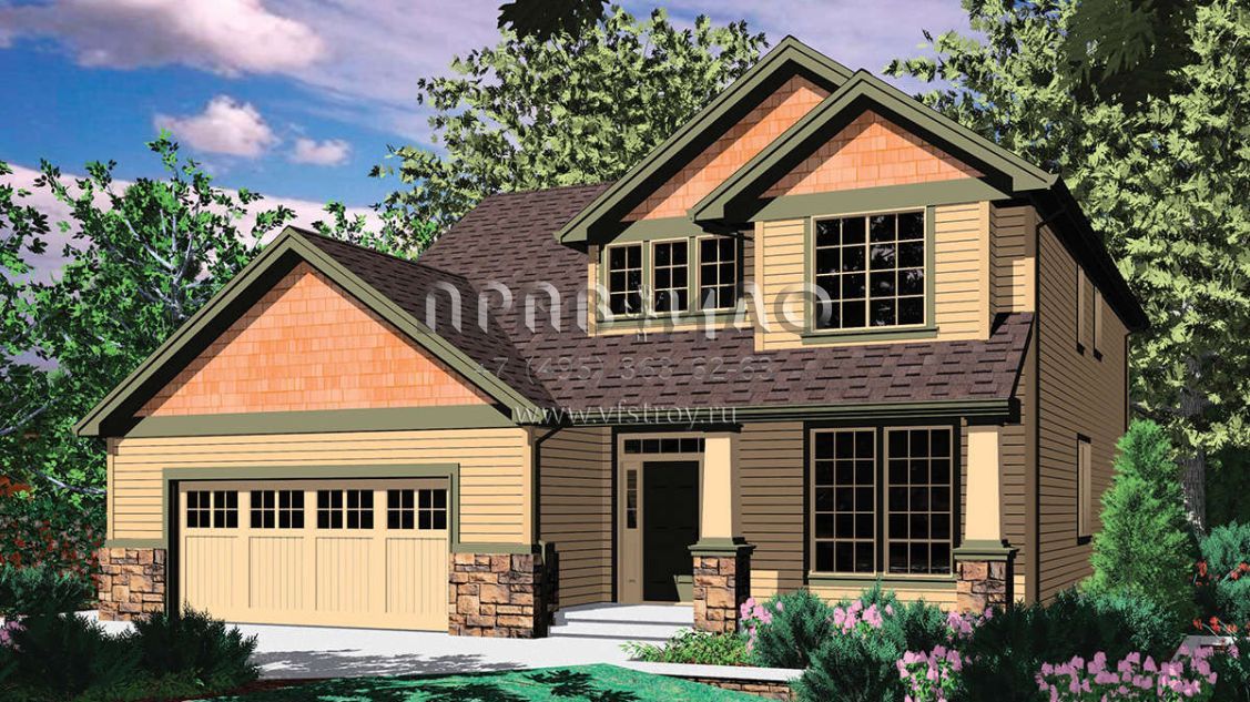 Проект двухэтажного дома с гаражом на две машины в стиле Ранчо S5-205 (2559-00418)