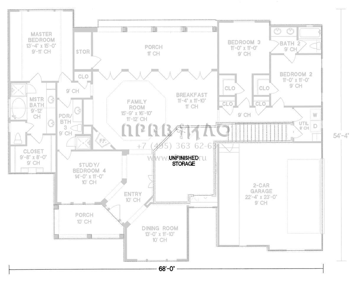 Поскольку этот проект разрабатывался иностранными архитекторами, для строительства дома требуется переработка проекта под действующие в России нормы. Данные визуализации проекта представлены для ознакомления с концепцией проекта. Проект разработан американским архитектурным бюро и представлен America's Best House Plans.