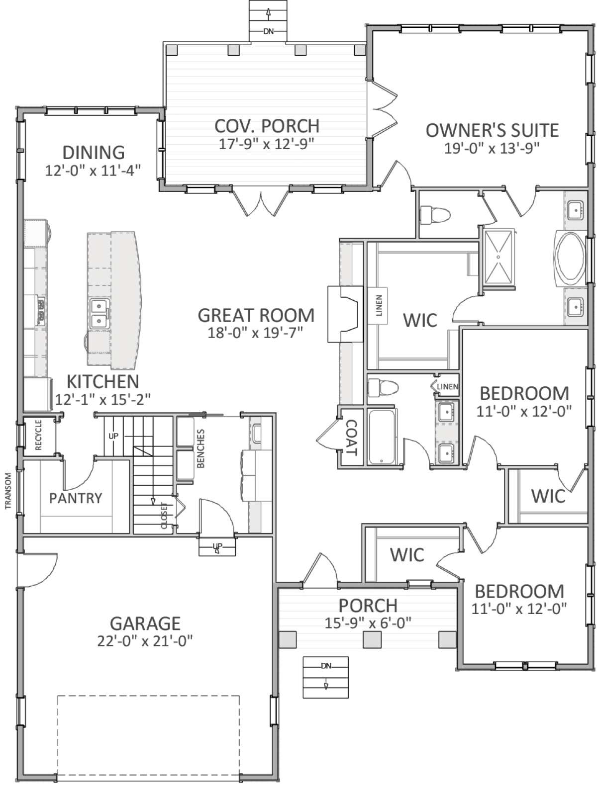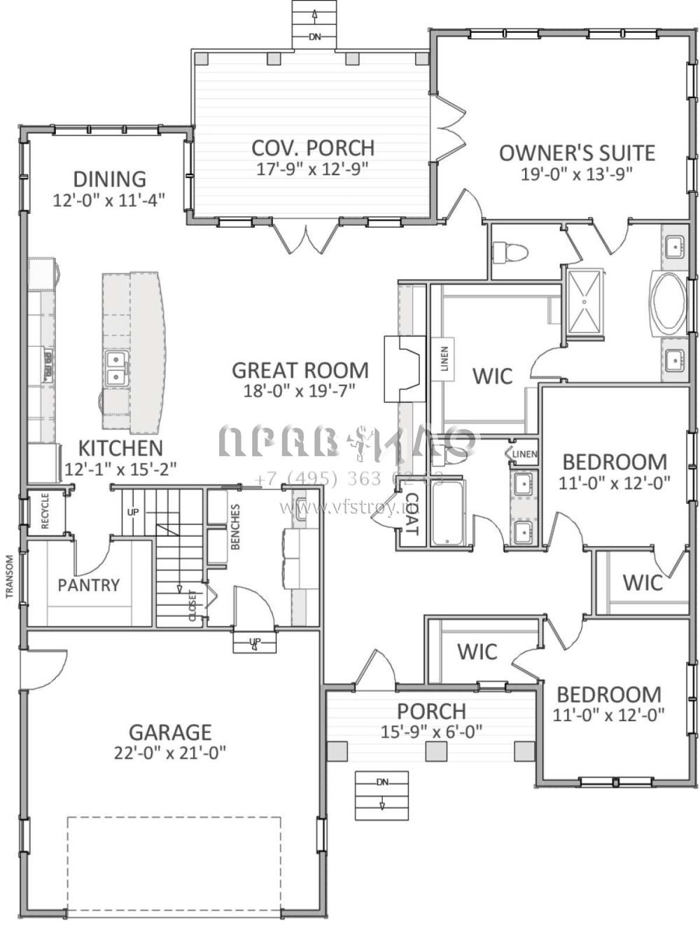 Проект одноэтажного дома с гаражом на две машины в американском стиле S5-205 (6849-00041)