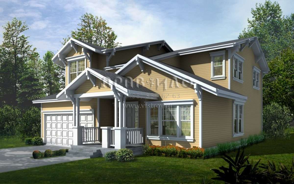 Проект двухэтажного дома с гаражом на две машины в американском стиле S5-205 (692-00081)