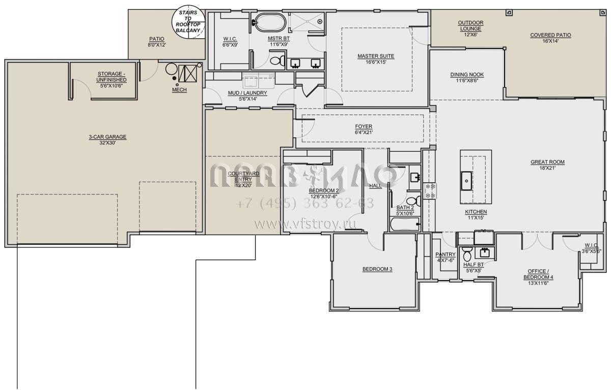Проект одноэтажного дома с гаражом на три и более машин в современном стиле S5-205 (7306-00005)