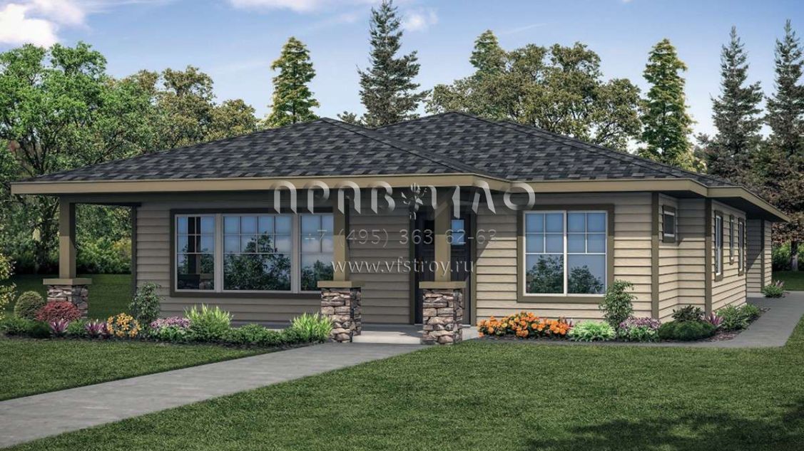 Проект одноэтажного дома с гаражом на две машины в стиле Райт S5-206 (035-00842)