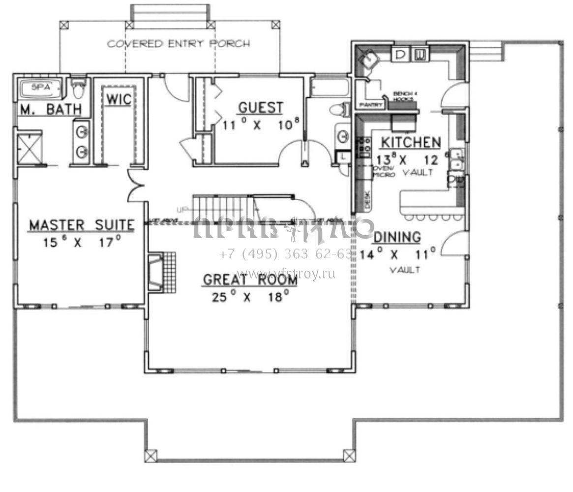 Поскольку этот проект разрабатывался иностранными архитекторами, для строительства дома требуется переработка проекта под действующие в России нормы. Данные визуализации проекта представлены для ознакомления с концепцией проекта. Проект разработан американским архитектурным бюро и представлен America's Best House Plans.