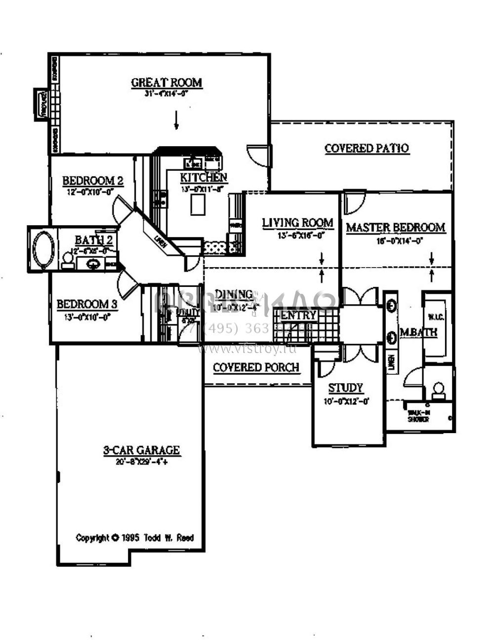 Проект одноэтажного дома с гаражом на три и более машин в стиле Ранчо S5-206 (286-00029)
