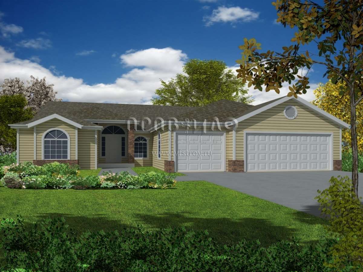Проект одноэтажного дома с гаражом на три и более машин в американском стиле S5-206 (286-00030)