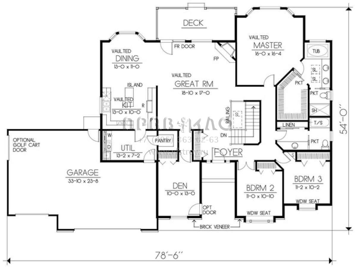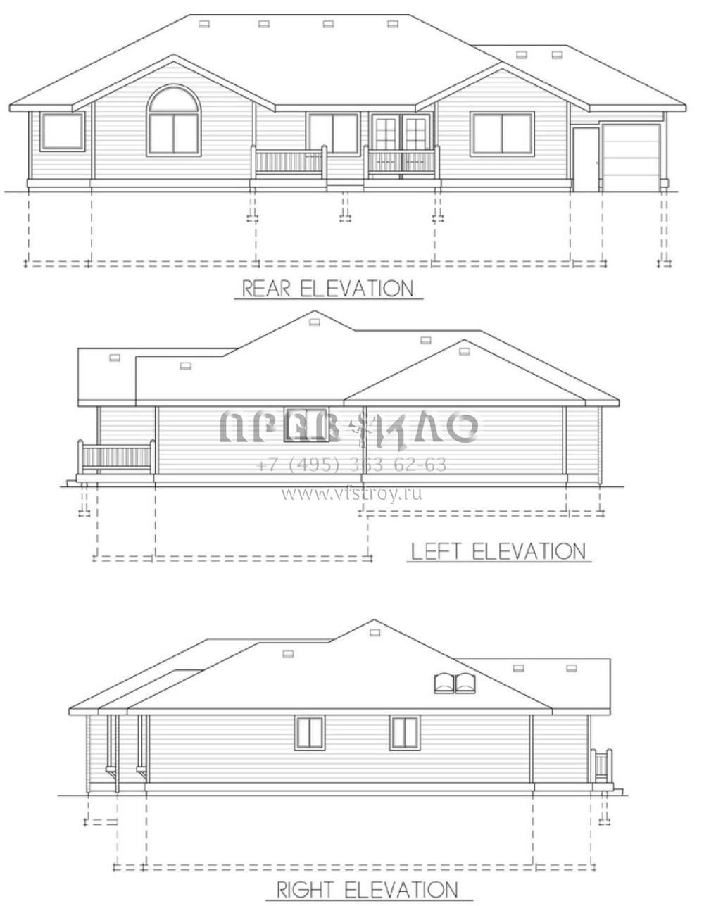 Проект одноэтажного дома с гаражом на три и более машин в стиле Ранчо S5-206 (692-00209)