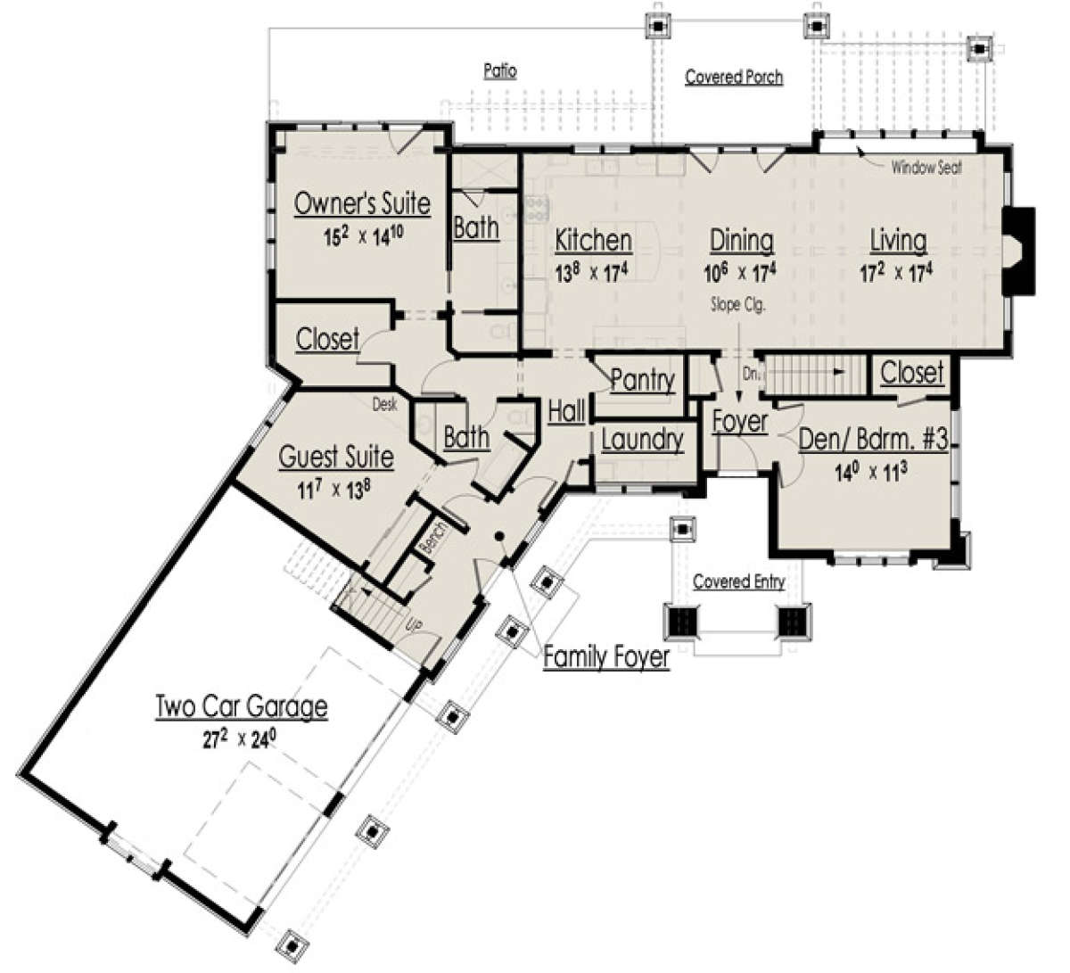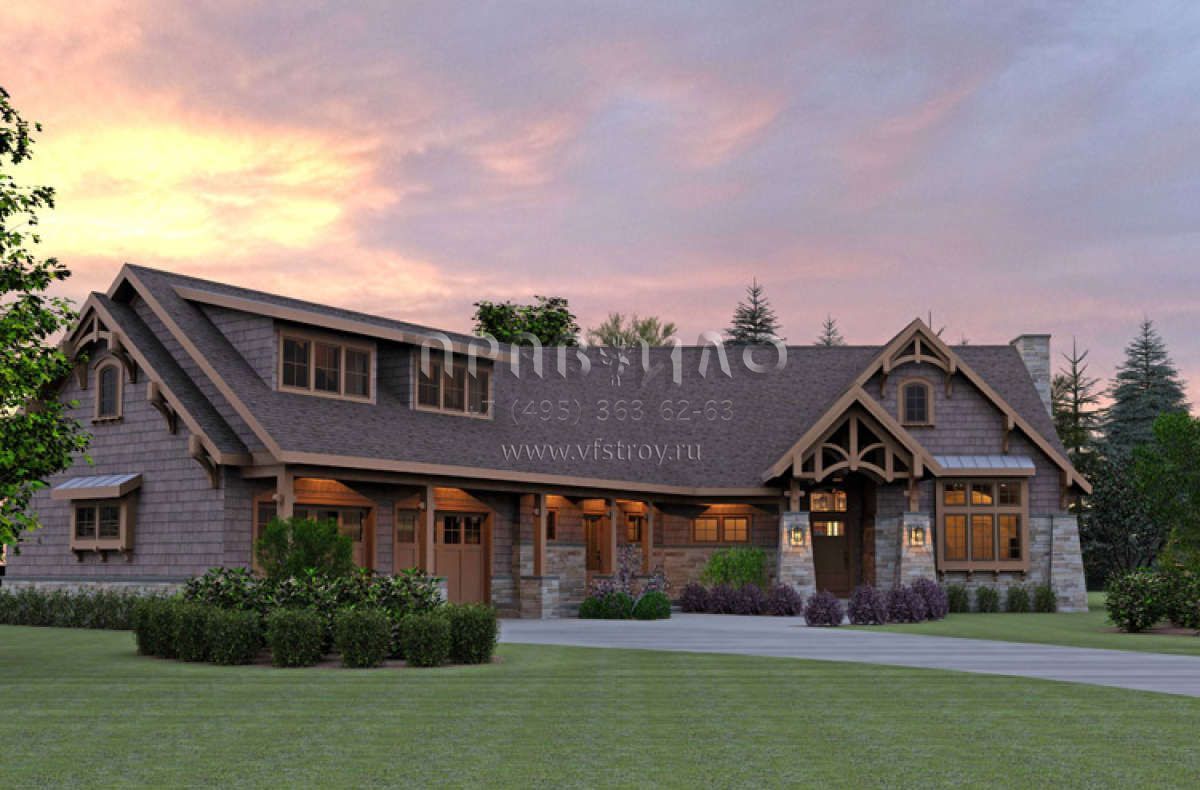 Проект двухэтажного дома с гаражом на две машины в стиле Ранчо S5-206 (7806-00003)