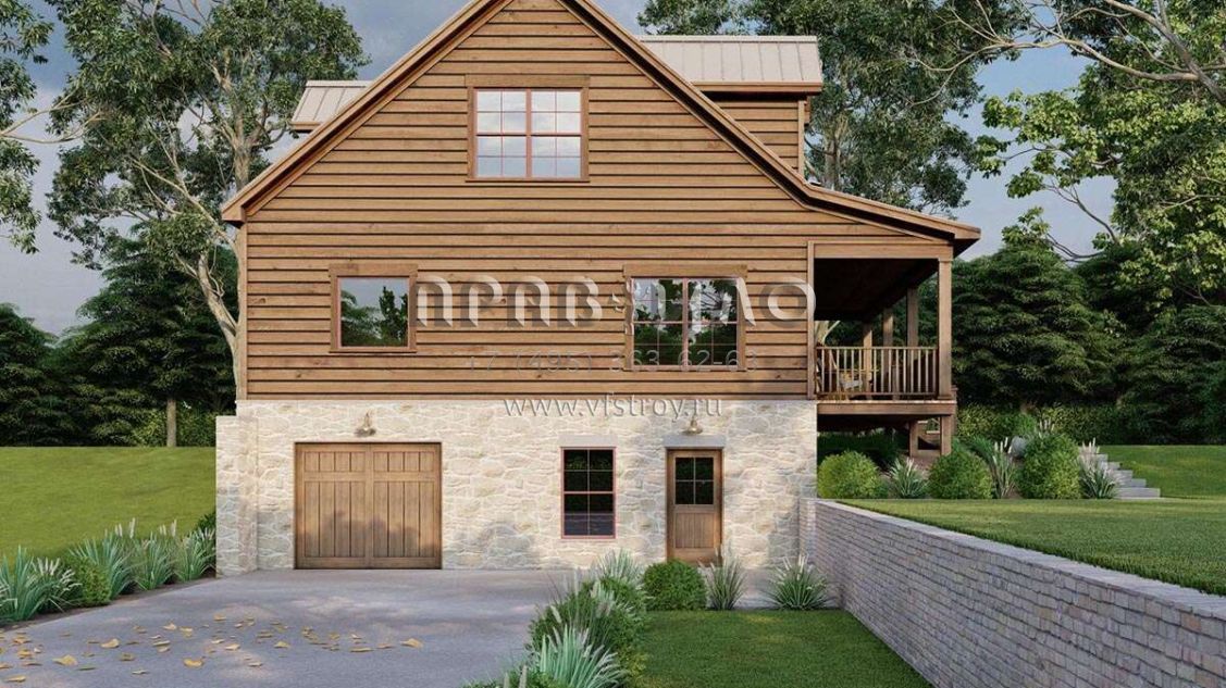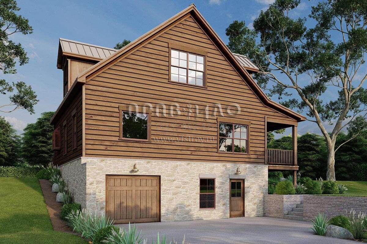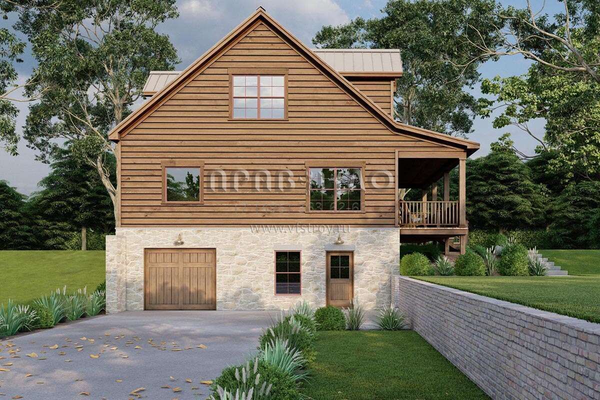 Проект двухэтажного дома с гаражом на одну машину в стиле Шале S5-206 (8318-00310)
