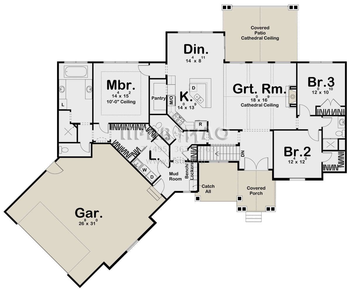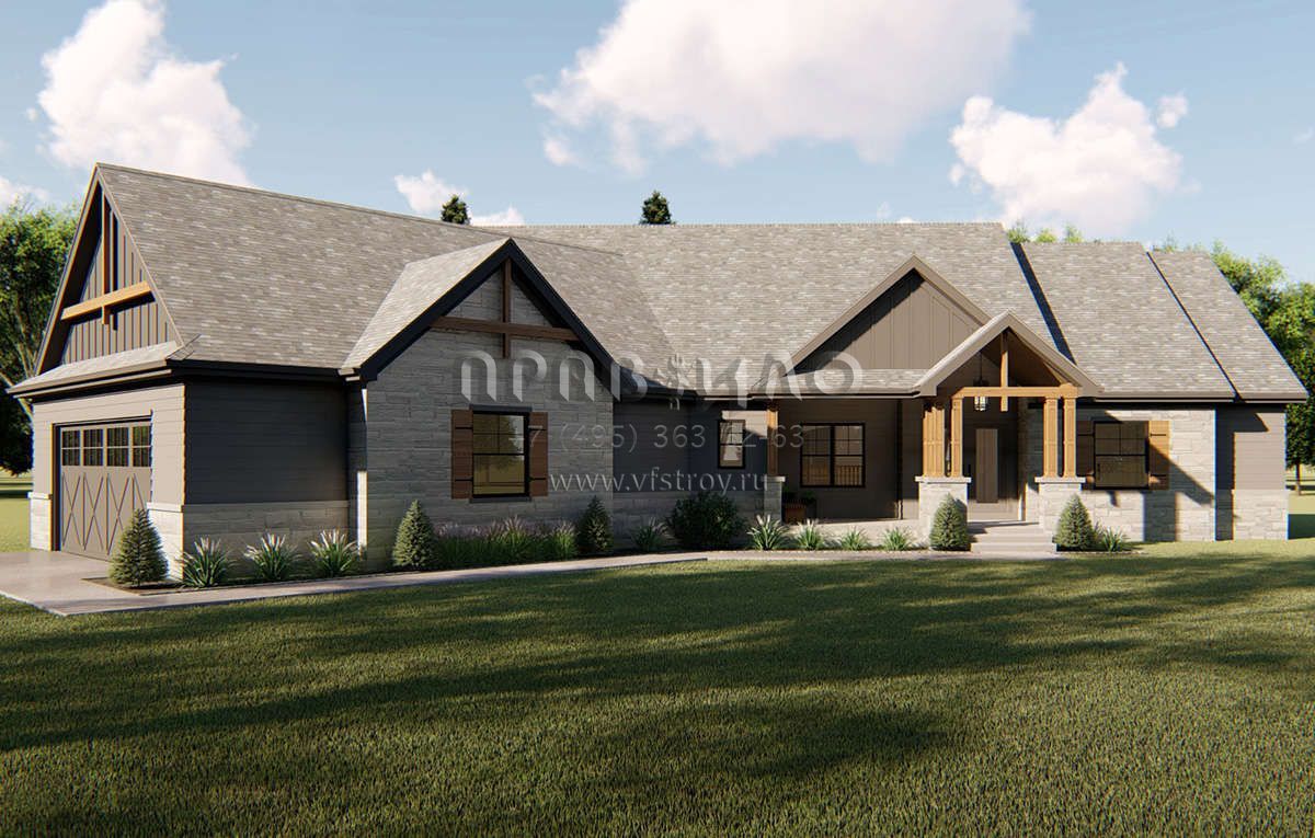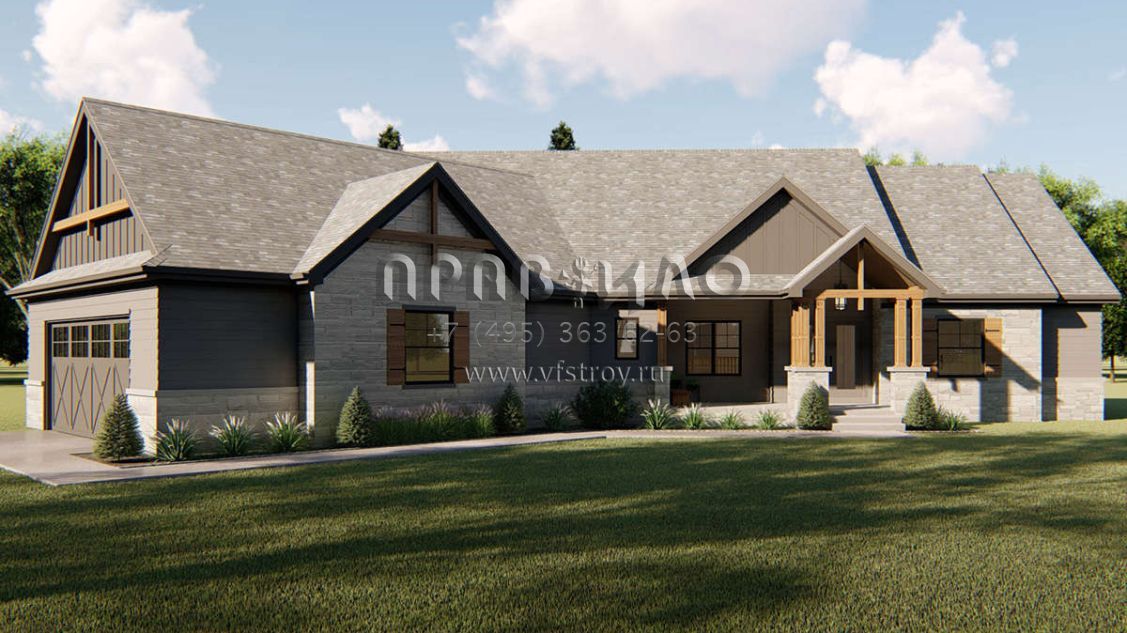 Проект одноэтажного дома с гаражом на две машины в американском стиле S5-206 (963-00347)