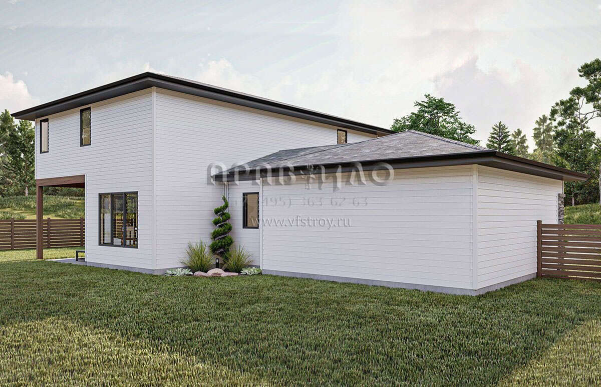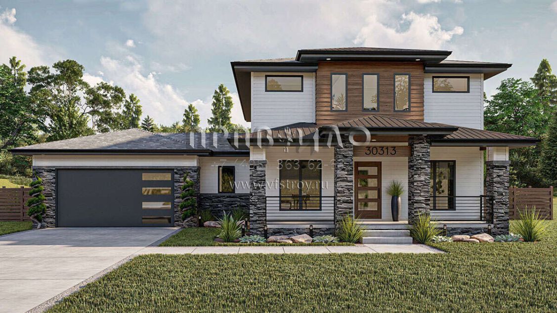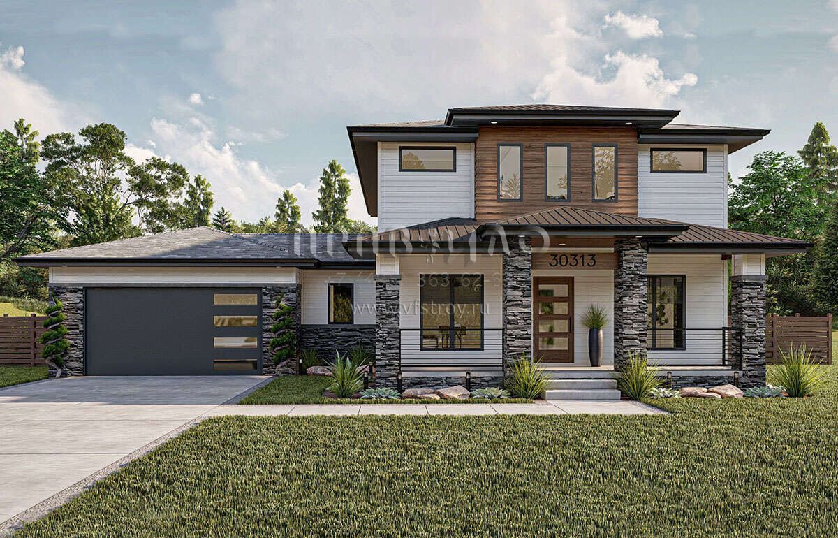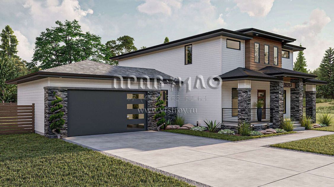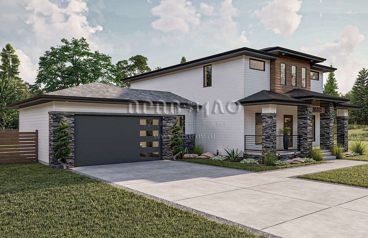 Проект двухэтажного дома с пристроенным гаражом на две машины S5-206 (963-00818)