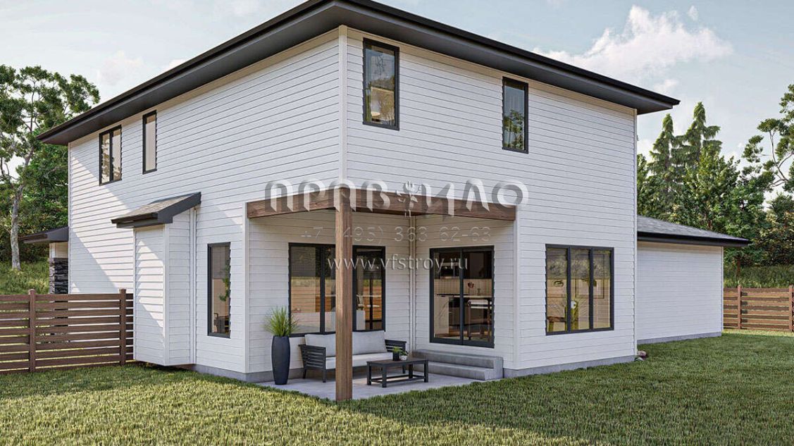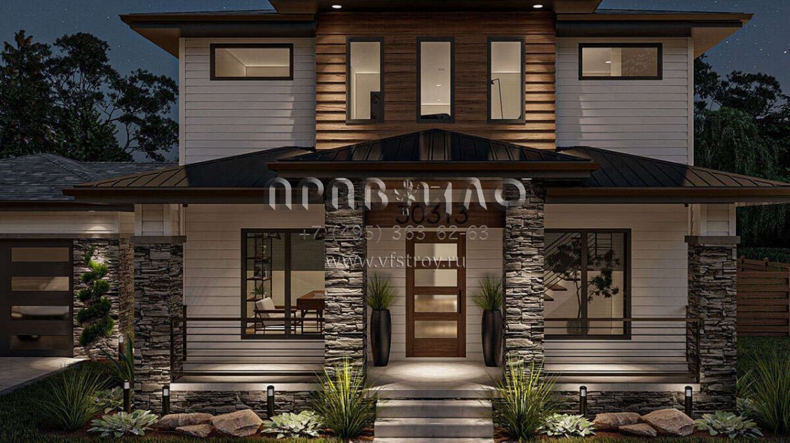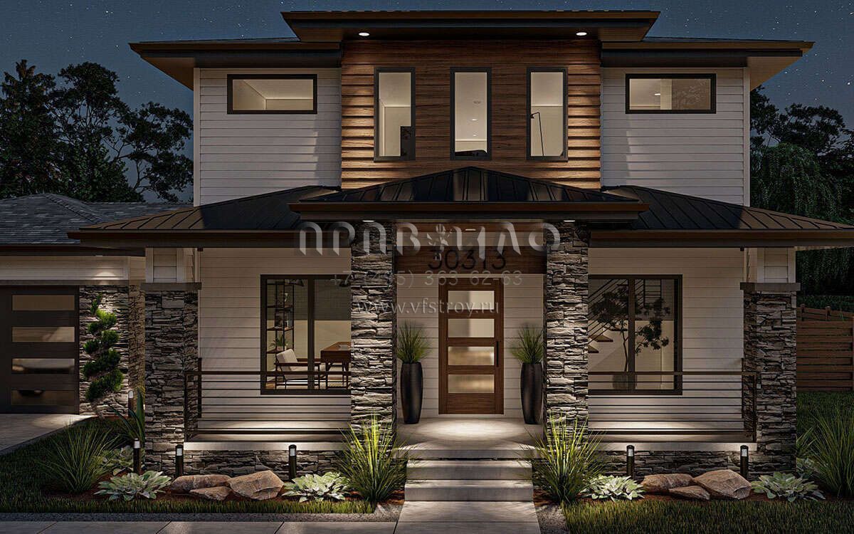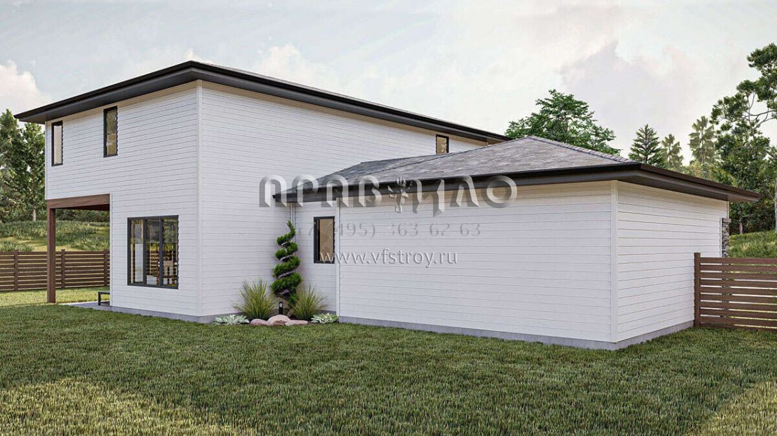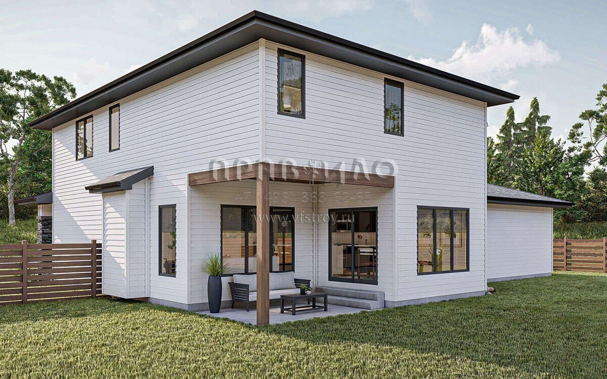 Проект двухэтажного дома с пристроенным гаражом на две машины S5-206 (963-00818)