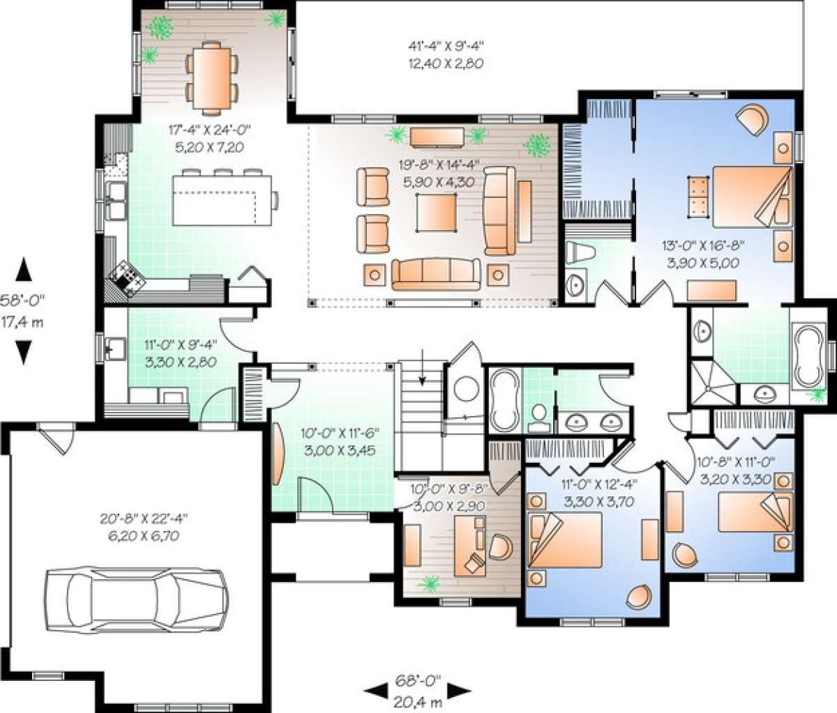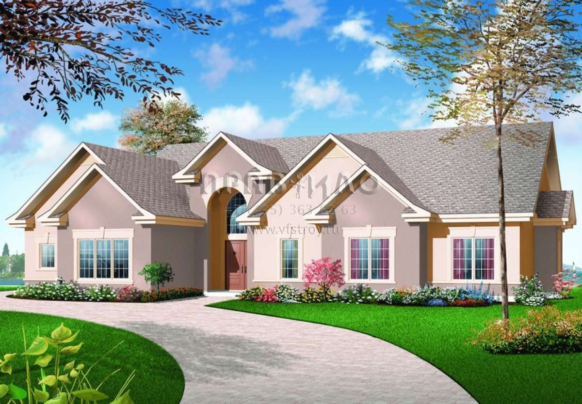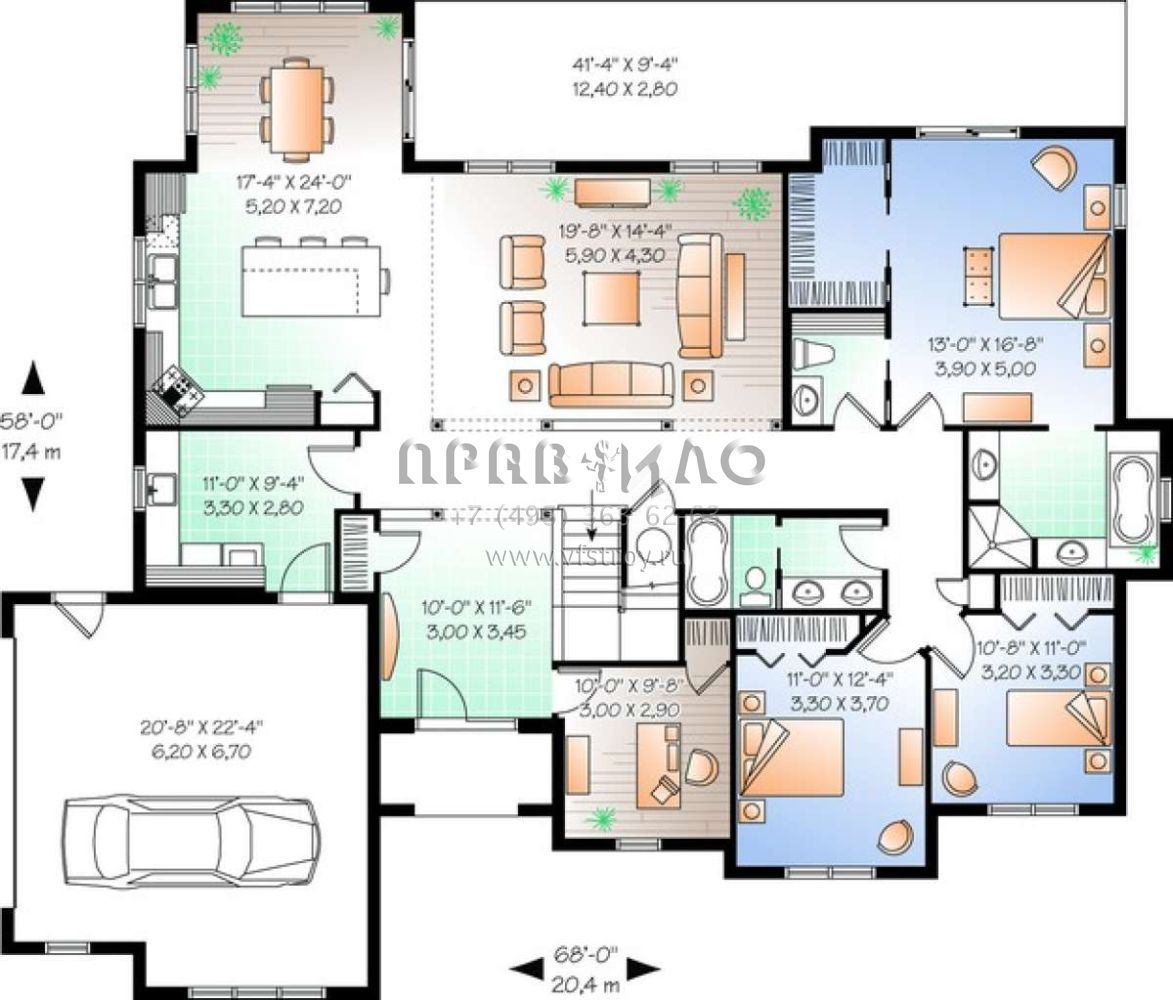 Проект двухэтажного дома с гаражом на две машины в стиле Ранчо S5-207 (034-00675)