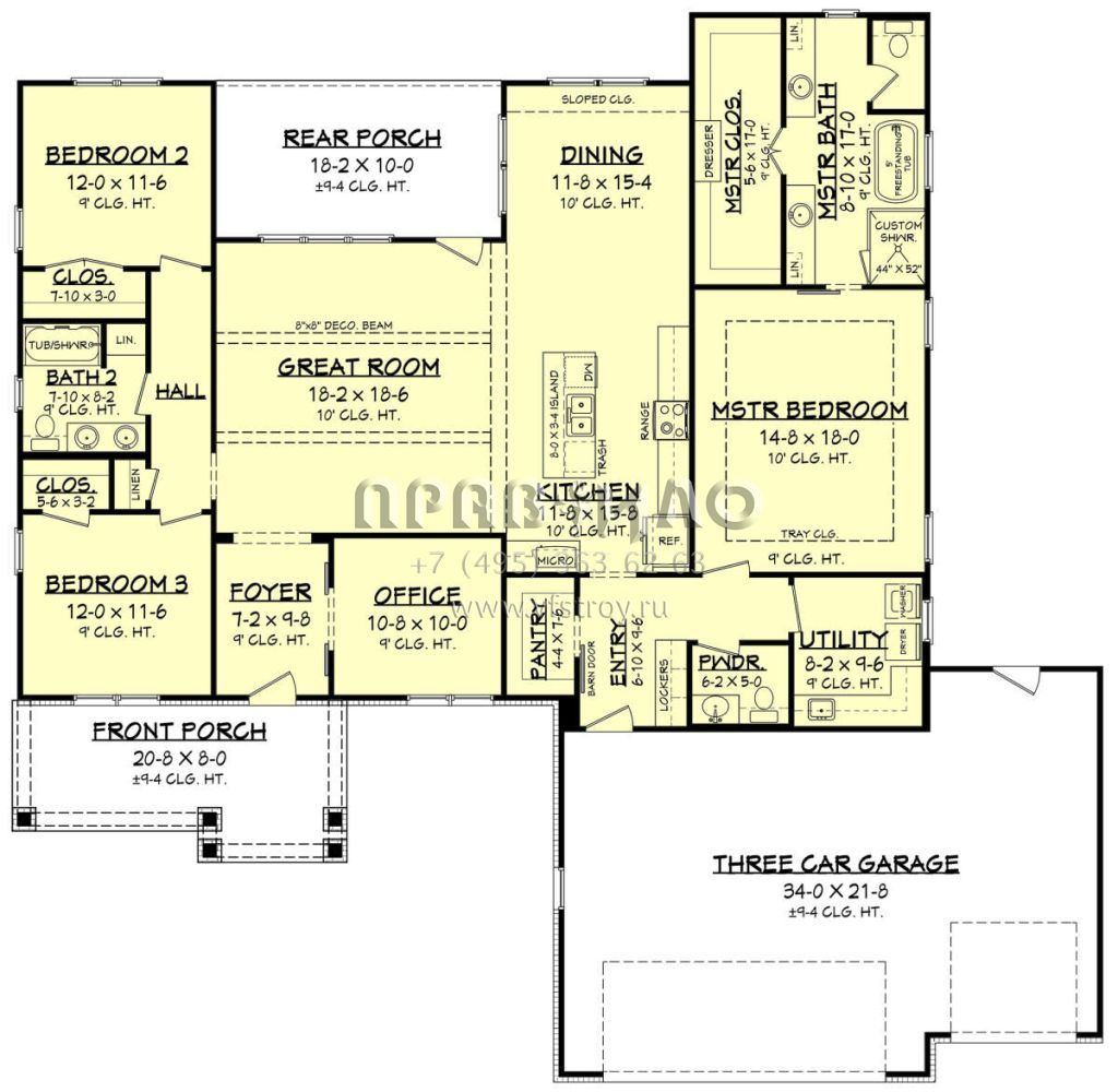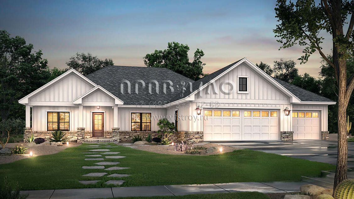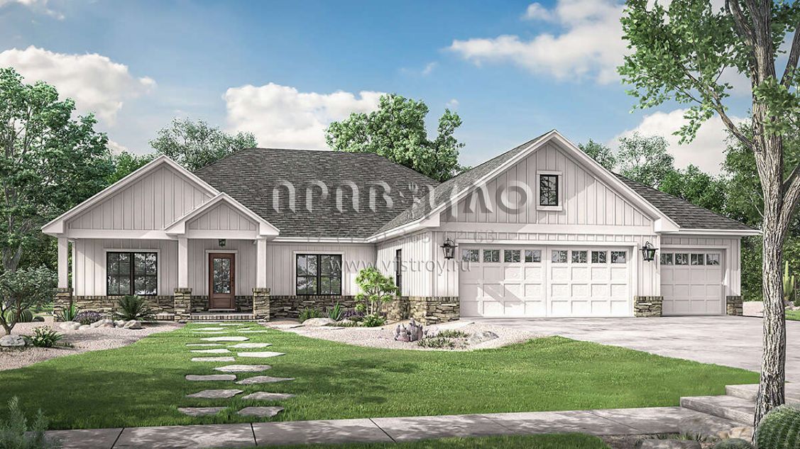 Проект одноэтажного дома с гаражом на три и более машин в современном стиле S5-207 (041-00213)