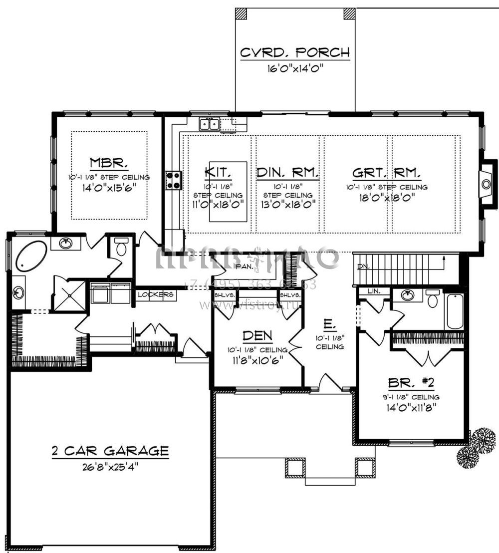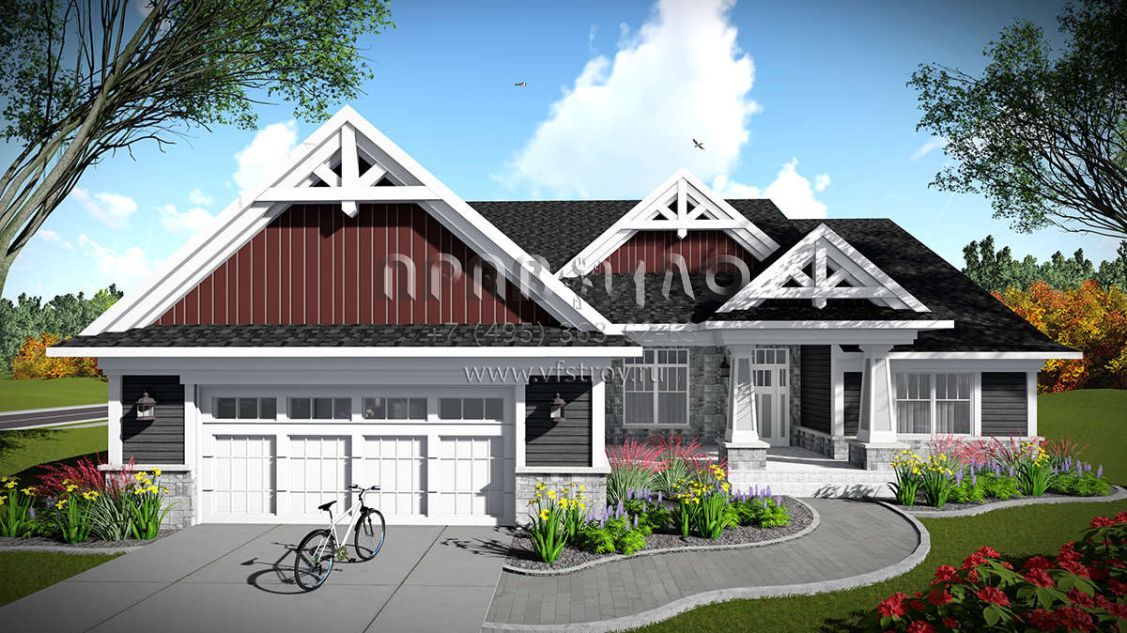 Проект одноэтажного дома с гаражом на две машины в американском стиле S5-207 (1020-00013)