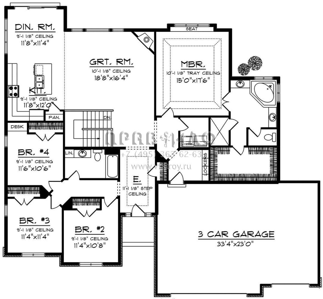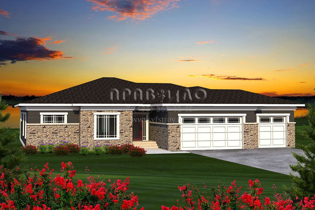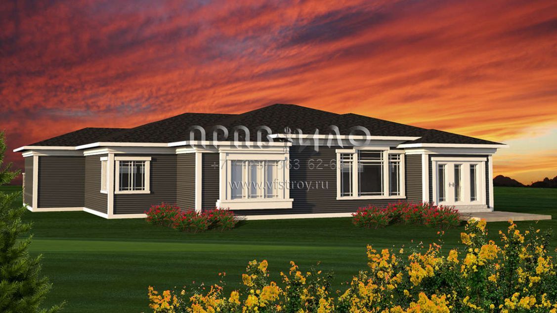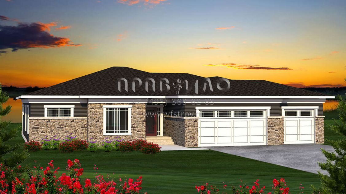 Проект одноэтажного дома с гаражом на три и более машин в стиле Райт S5-207 (1020-00173)