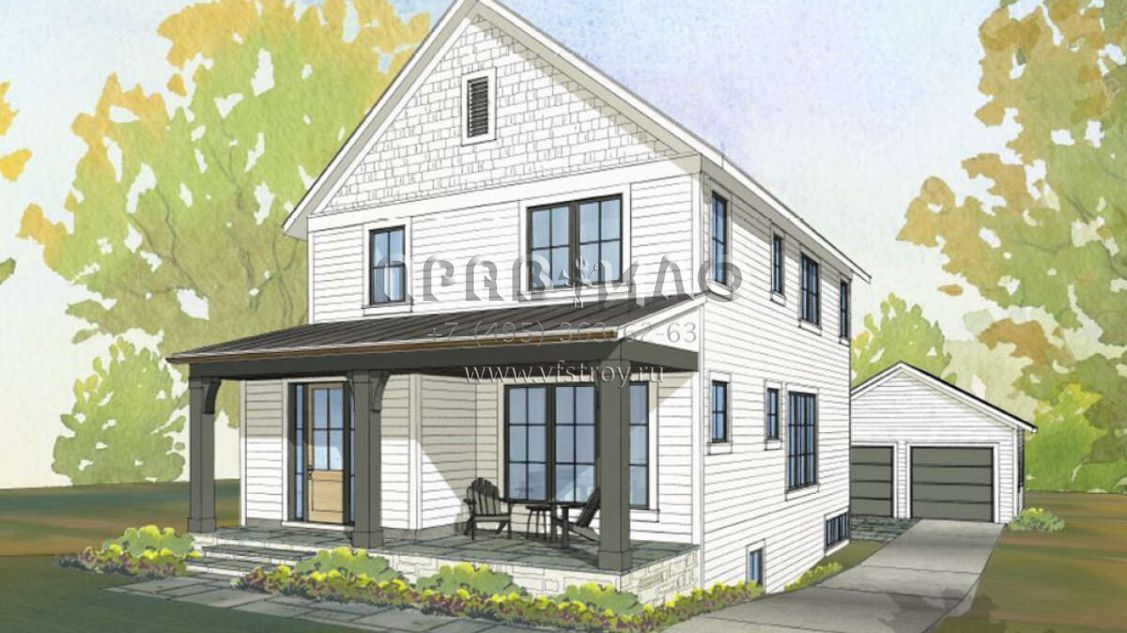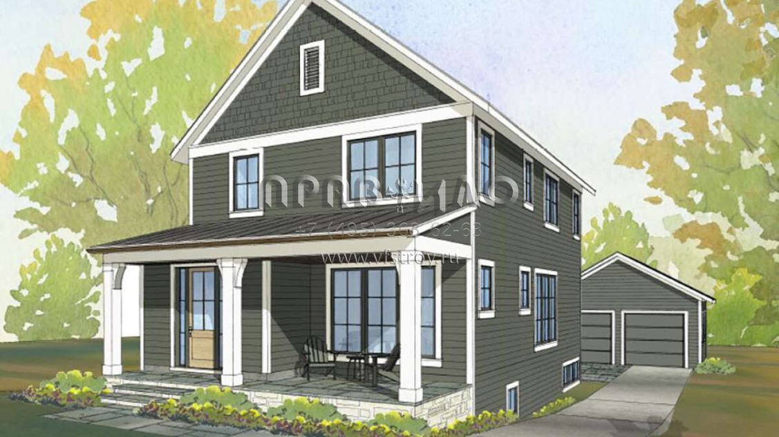Проект двухэтажного дома с гаражом на две машины в стиле Ранчо S5-207 (1637-00159)